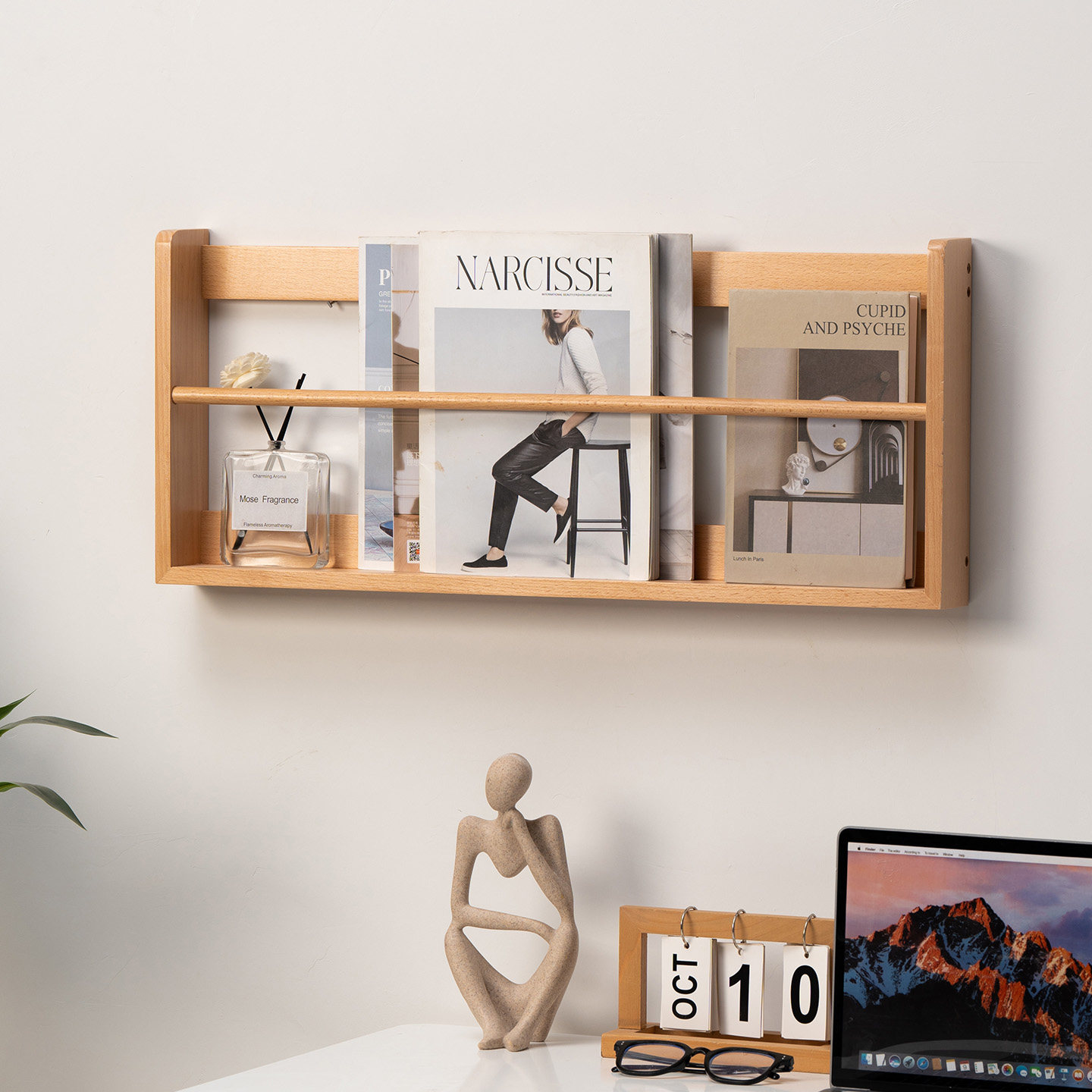 榉木墙上置物架墙面壁挂书架实木板隔板悬空置物板墙壁收纳架