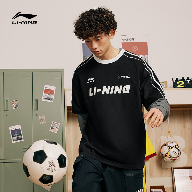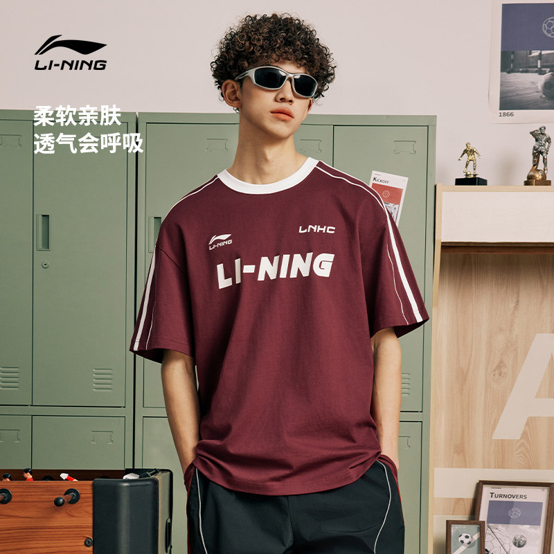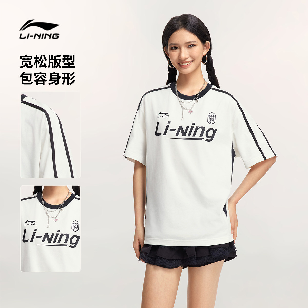 李宁短袖男女同款夏季圆领体恤美式复古宽松休闲上衣纯棉运动T恤