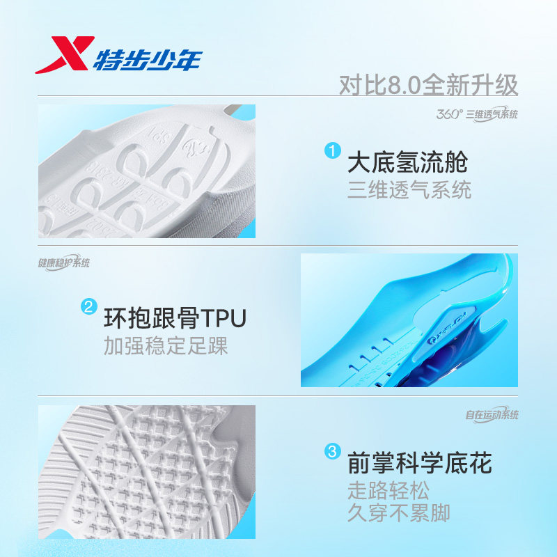 【氢风9.0护足跑鞋】特步儿童网面透气跑步鞋休闲白色男童运动鞋