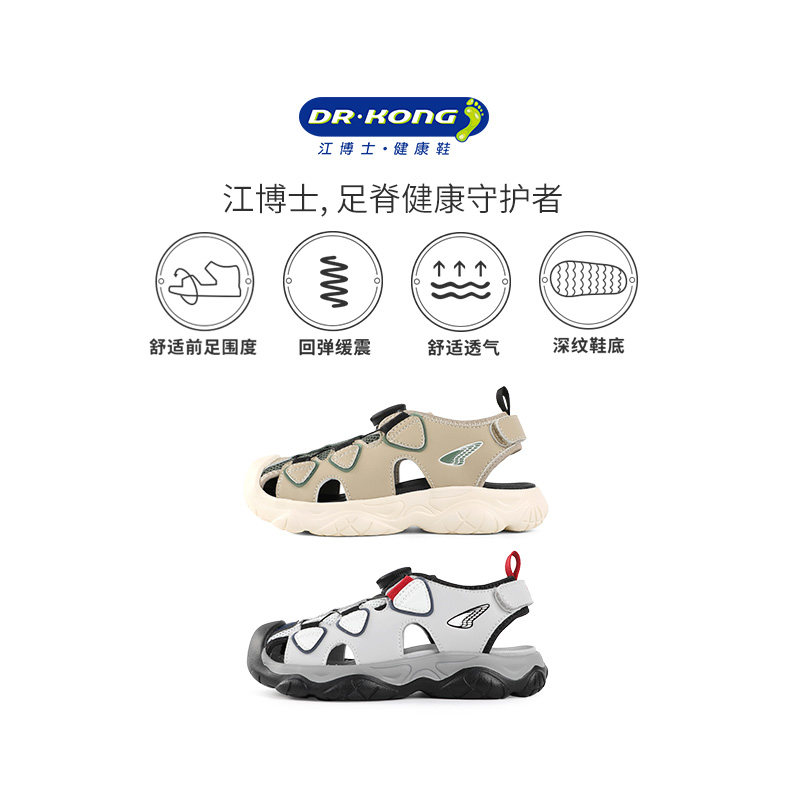 Dr.Kong江博士童鞋男孩潮流免系旋钮扣2024新款运动儿童夏季凉鞋