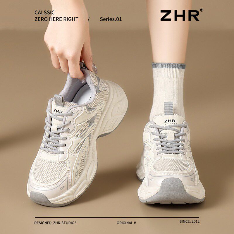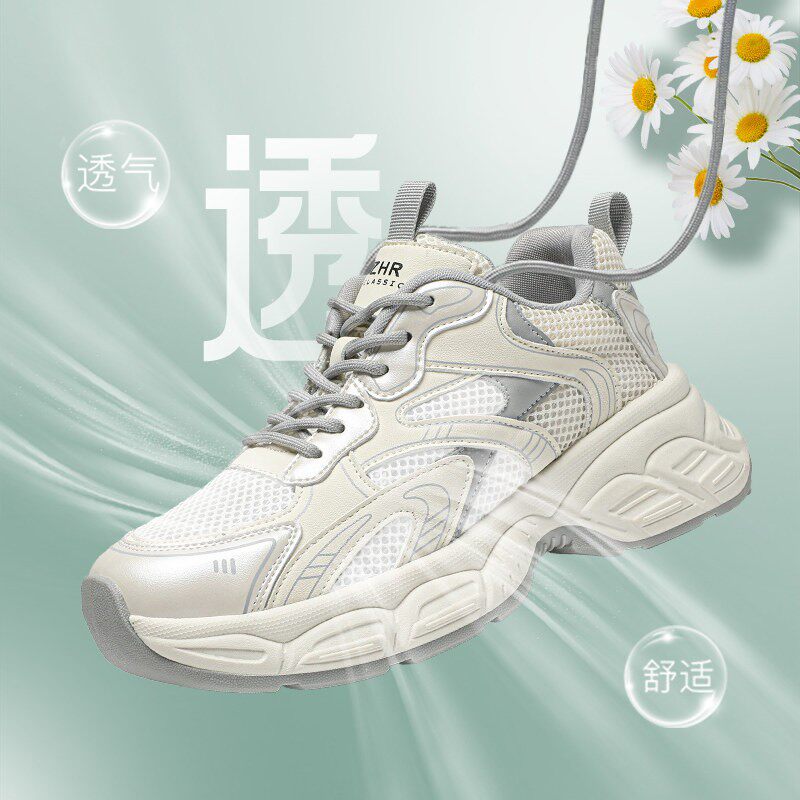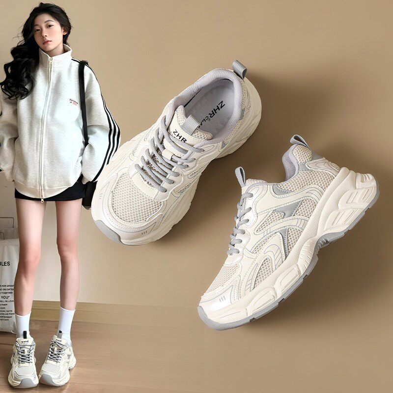 厚底老爹鞋女款2026新款秋季灰色显脚小网面透气小个子增高小白鞋