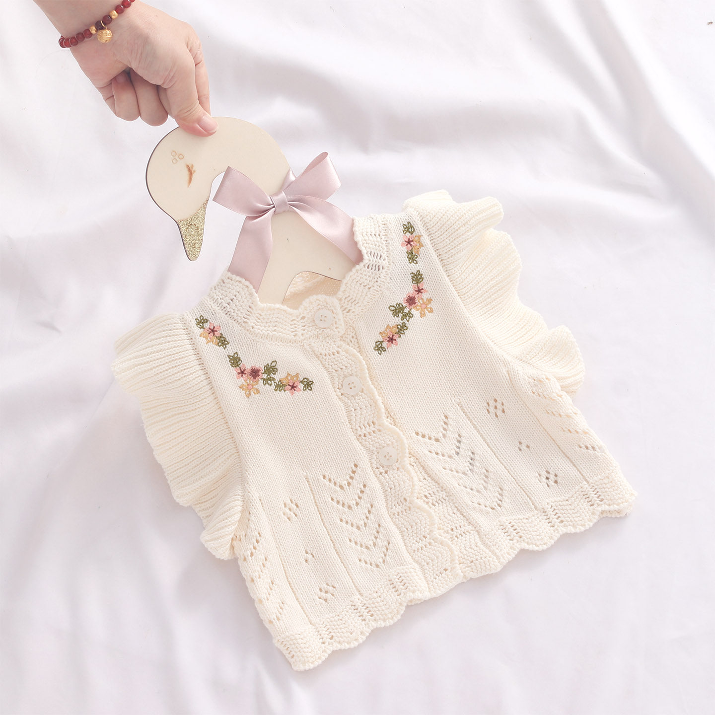 女童针织背心纯棉新生宝宝马甲3月婴儿毛衣外套公主洋气ins春秋装