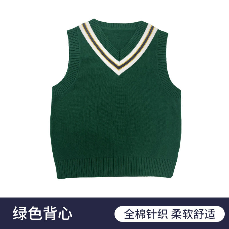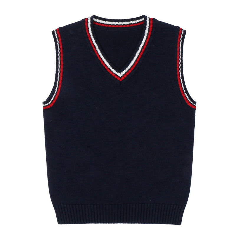小学生校服马甲酒红色儿童毛衣背心V领男童女童针织马夹纯棉坎肩9