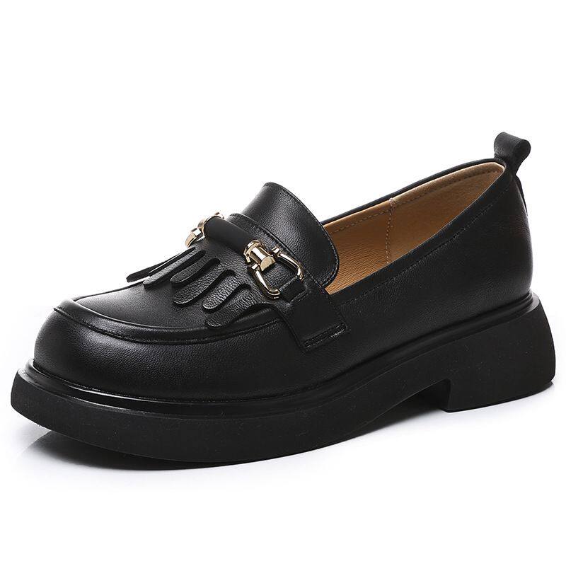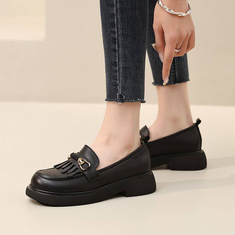 真皮乐福鞋女2026春季新款头层羊皮一脚蹬英伦风小皮鞋百搭懒人鞋