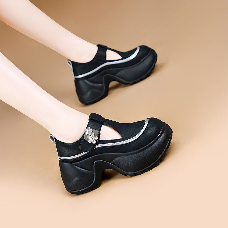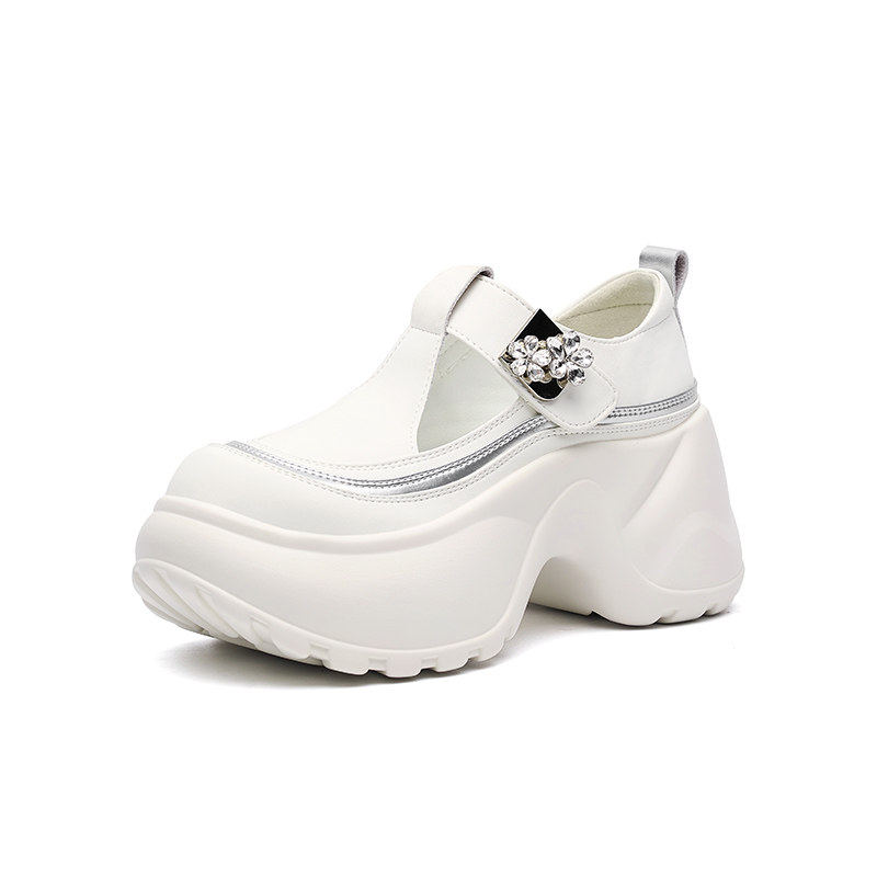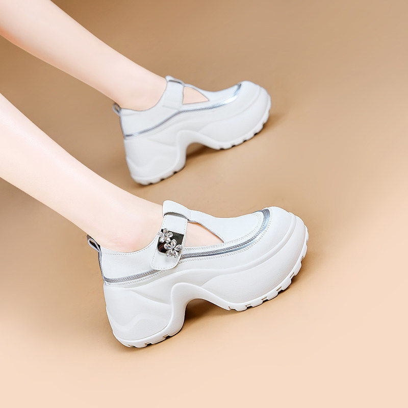 小个子8cm隐形内增高小白鞋真皮网面透气老爹鞋女夏休闲包头凉鞋