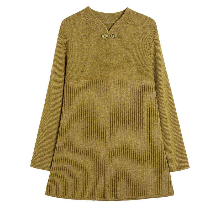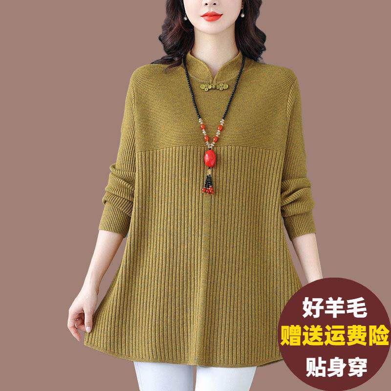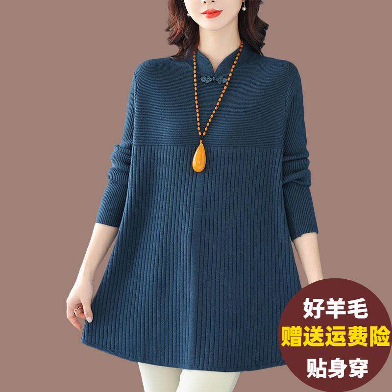 秋冬羊毛衫女中长款洋气妈妈国风针织连衣裙大码遮肚子打底毛衣裙