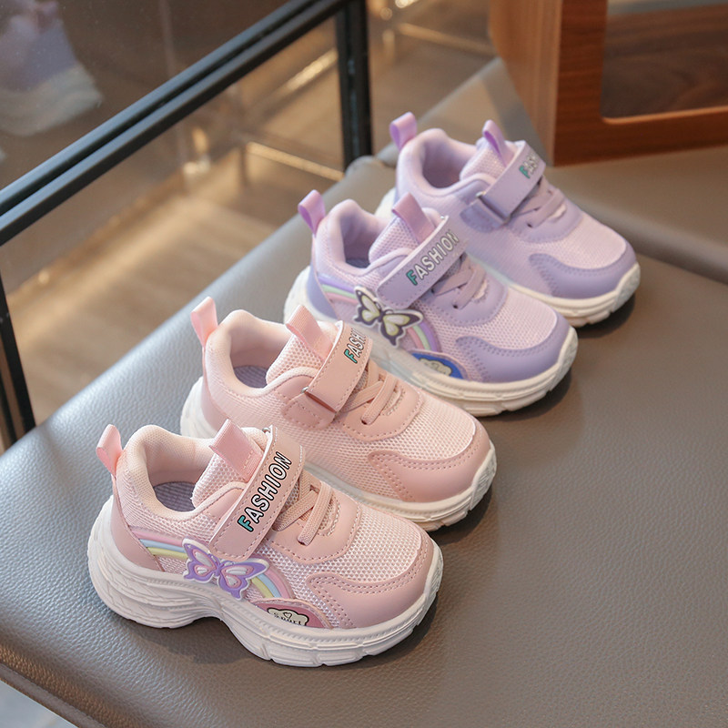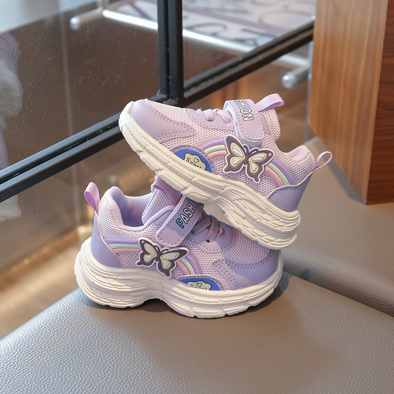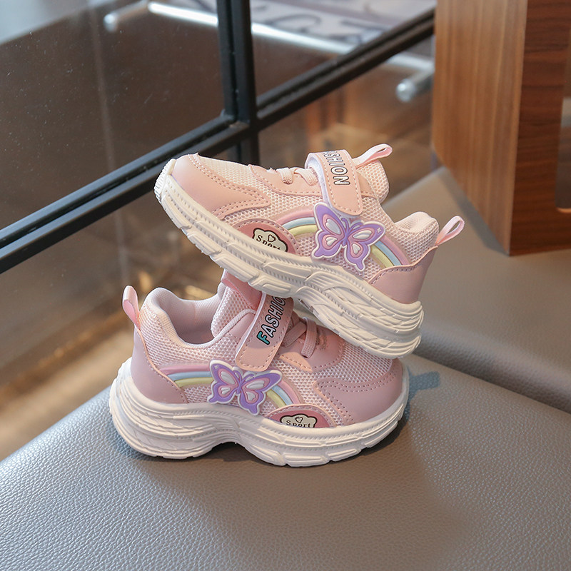 透气网面鞋儿童运动鞋2025春夏女童休闲鞋单鞋学步鞋卡通蝴蝶彩虹