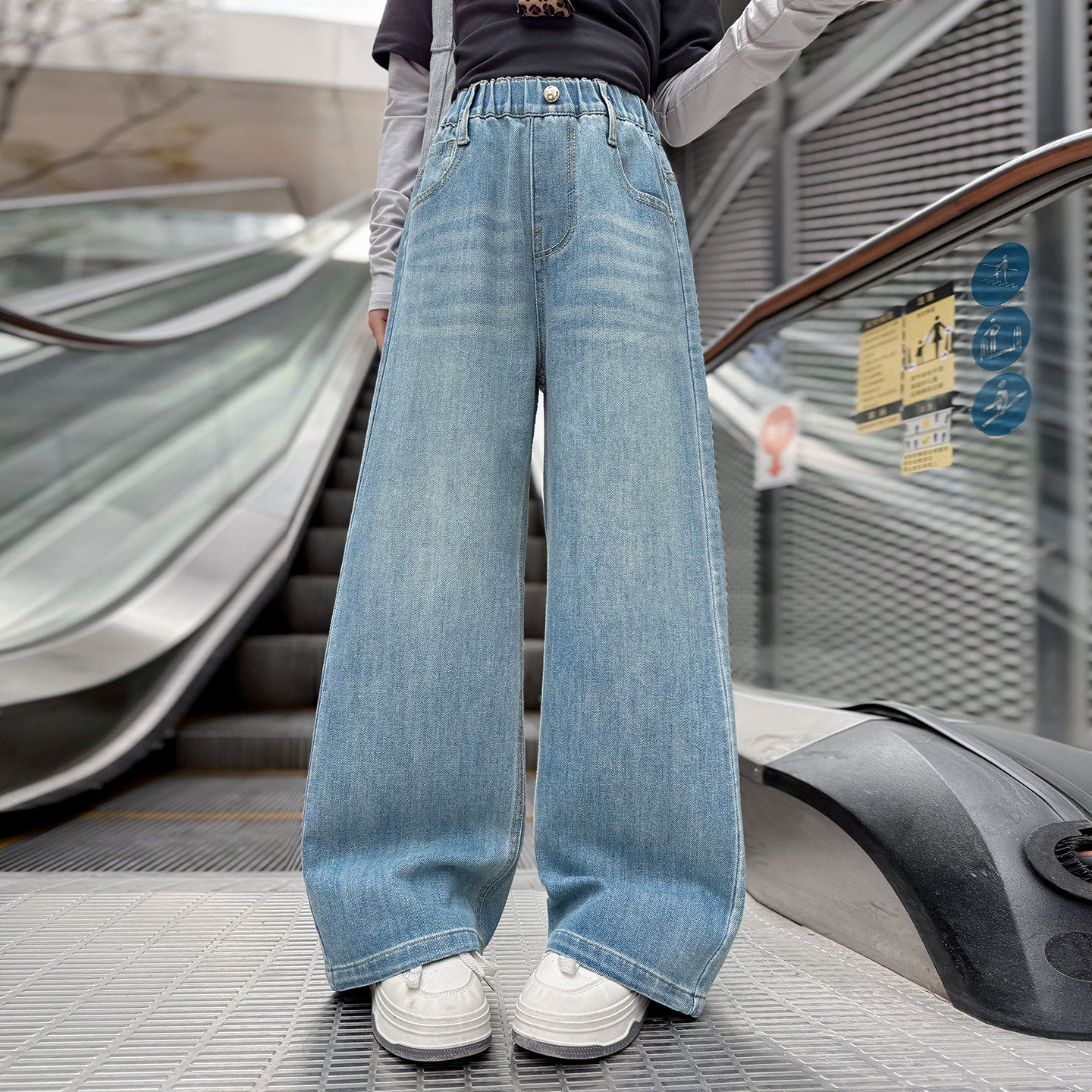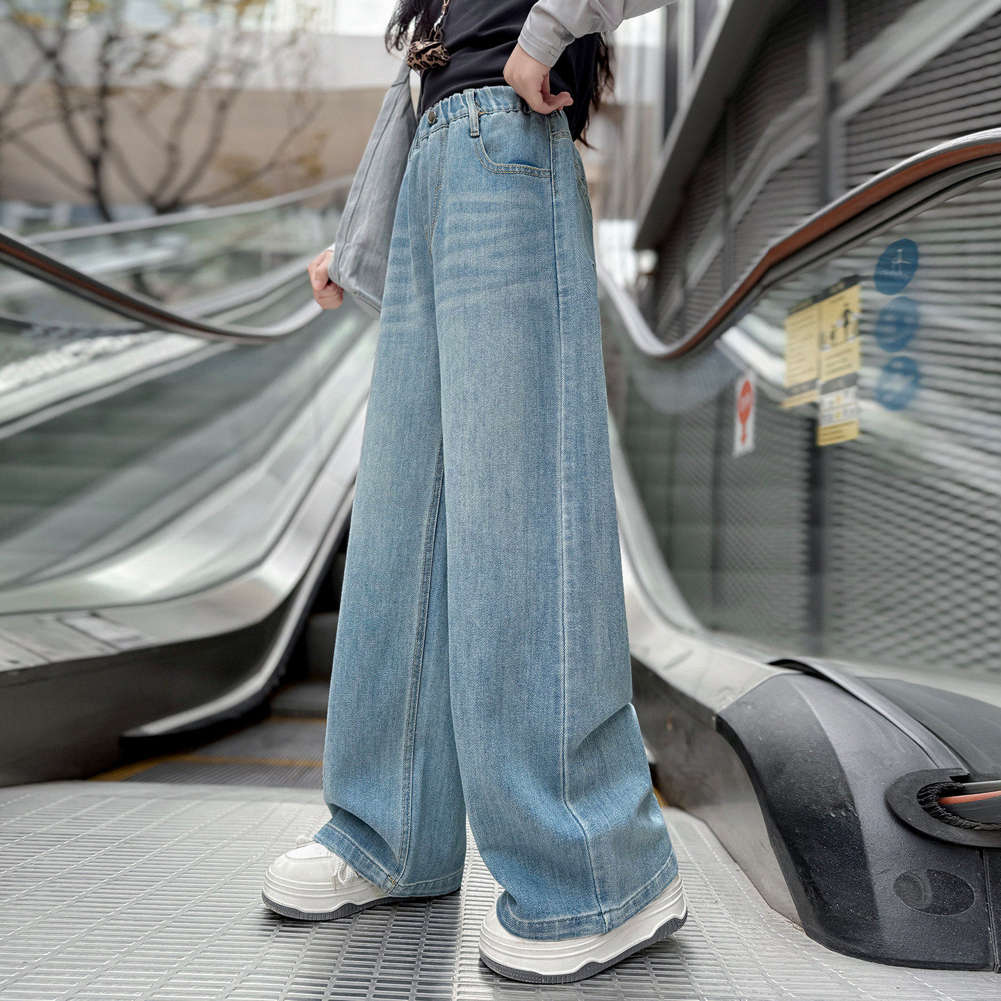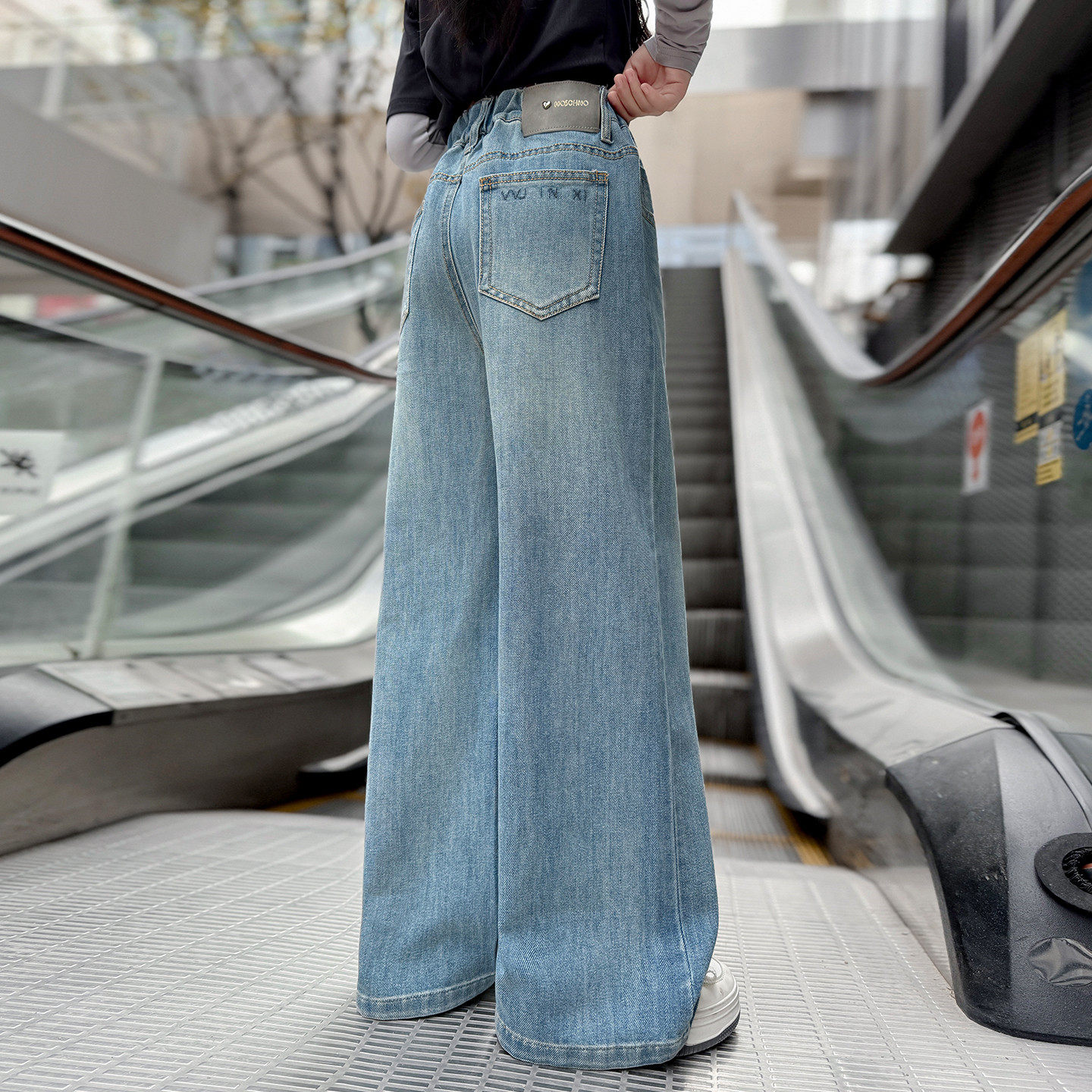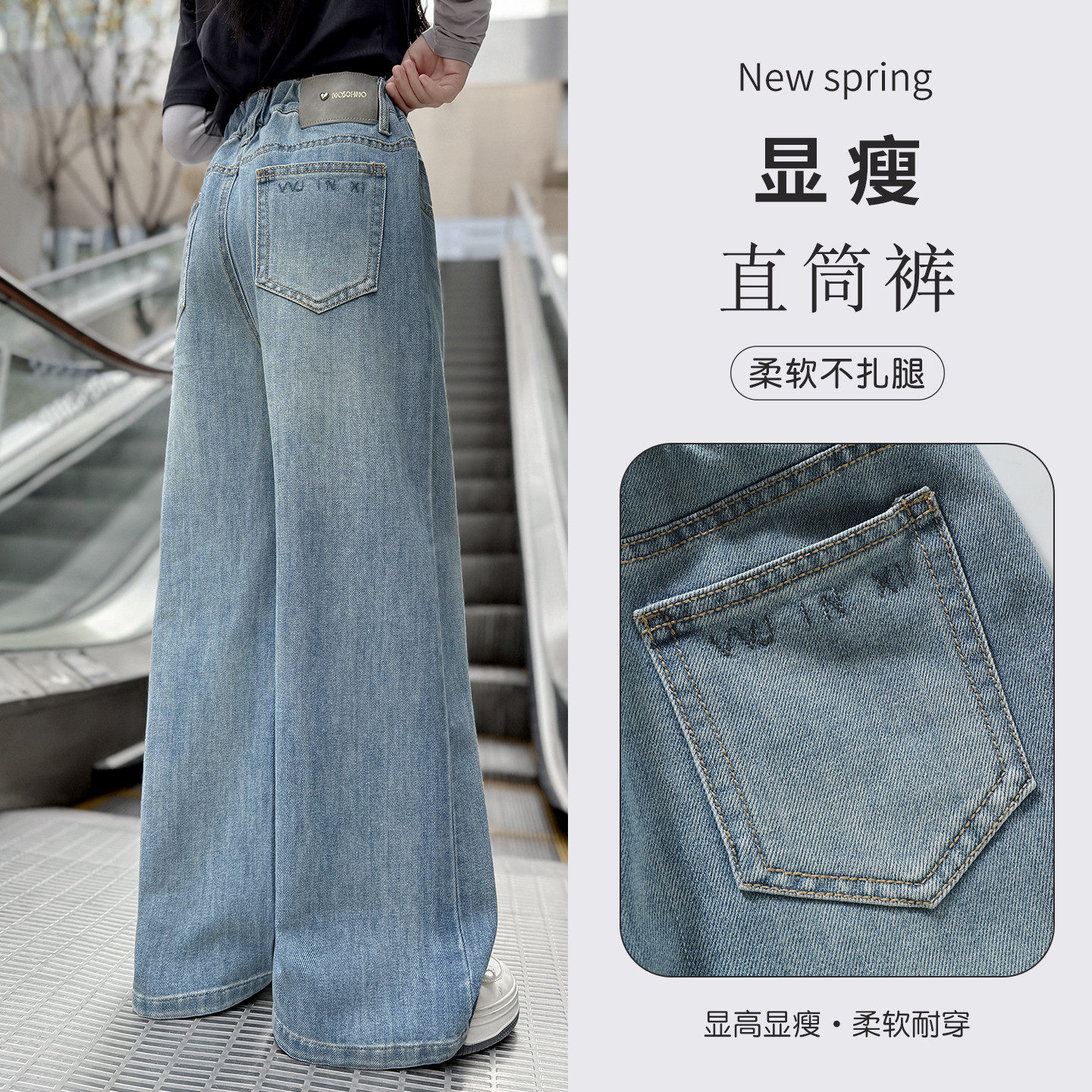 女童牛仔裤裤子儿童春装2026新款中大童女孩直筒春秋窄版阔腿裤潮