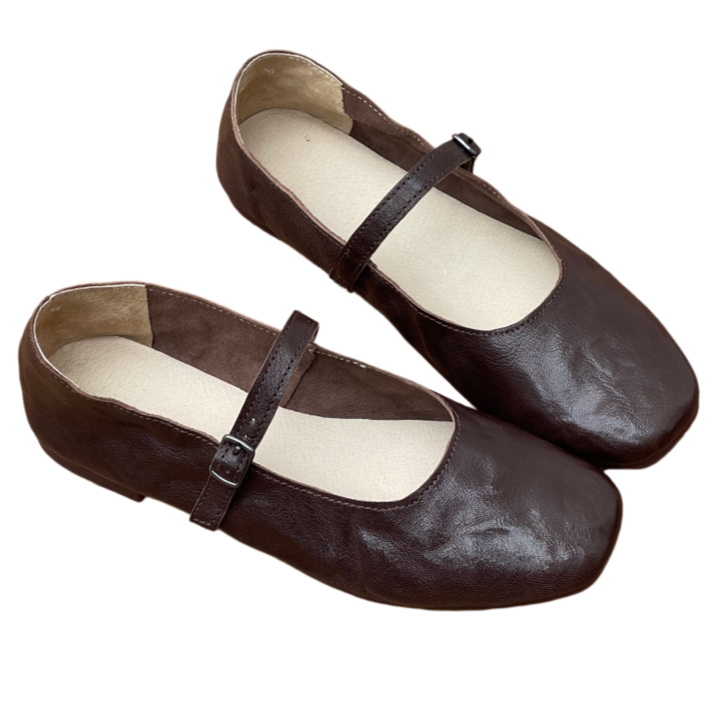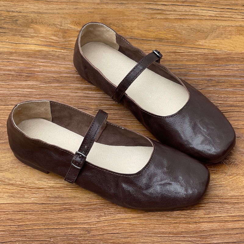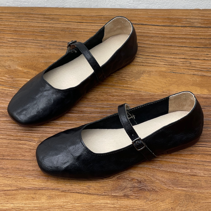 手工真皮玛丽珍鞋平底休闲女鞋春夏新款一字扣浅口单鞋舒适奶奶鞋