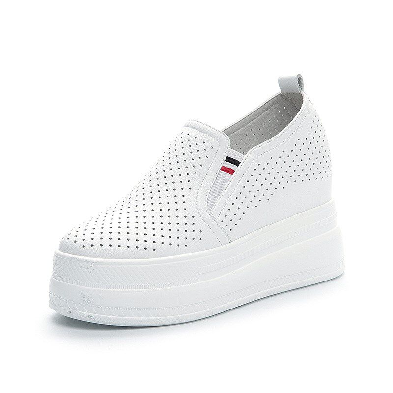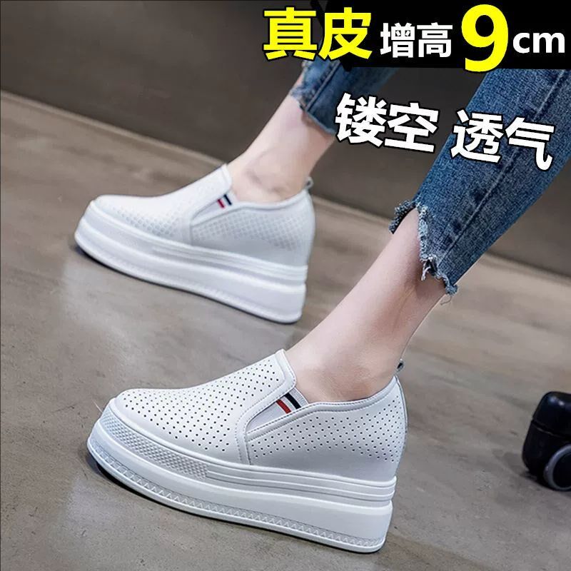 一脚蹬小白鞋女镂空透气内增高10cm夏天小个子厚T底松糕休闲女鞋