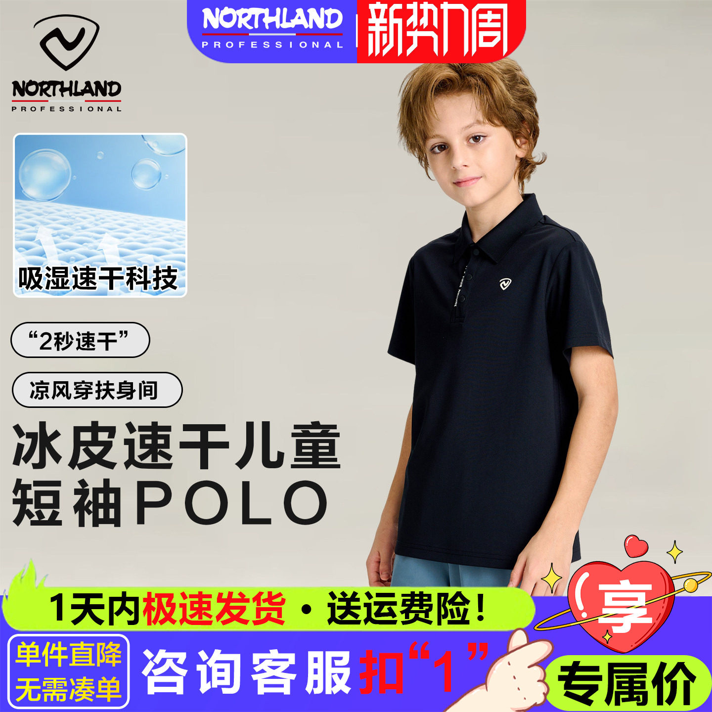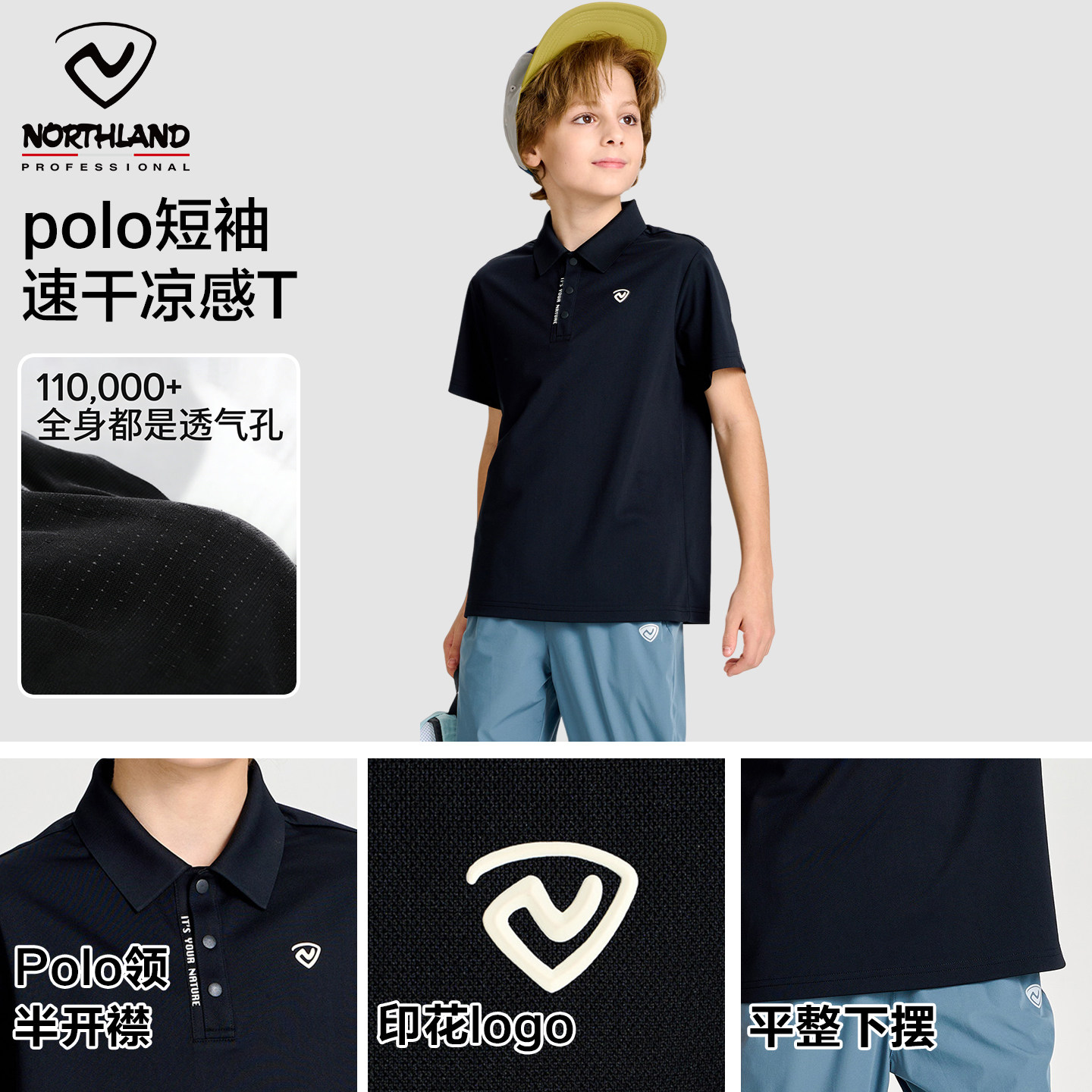 诺诗兰男童短袖POLO衫女童速干翻领T恤儿童2025夏季凉感透气班服