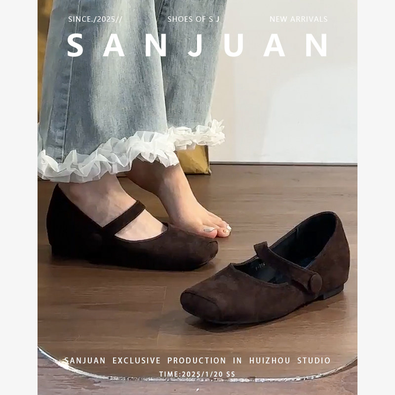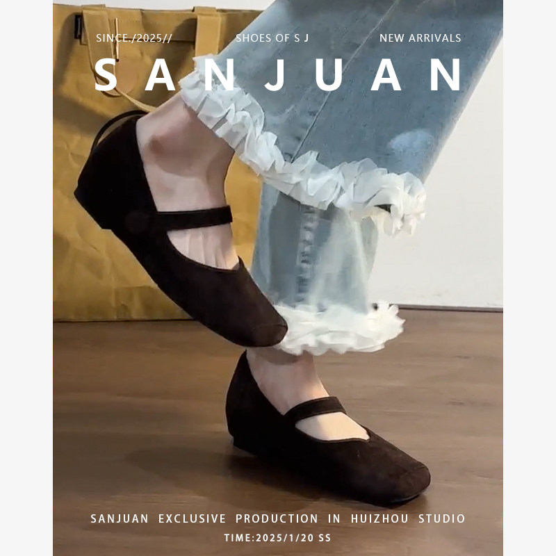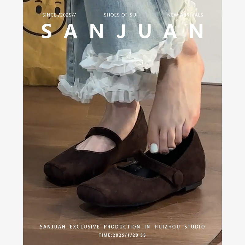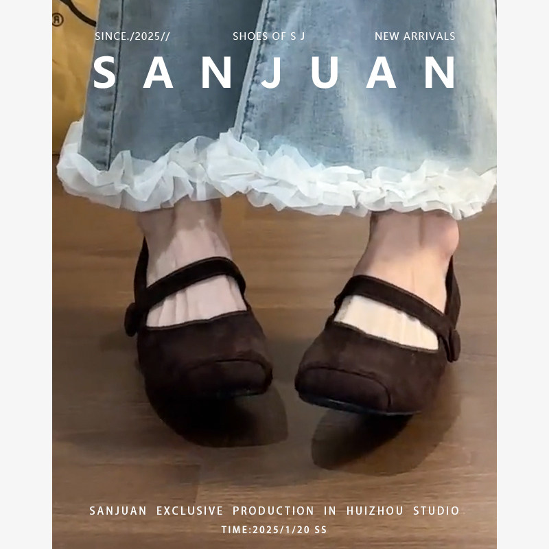 羊皮版sanjuan三卷法式内增高单鞋浅口方头复古玛丽珍女鞋子春夏