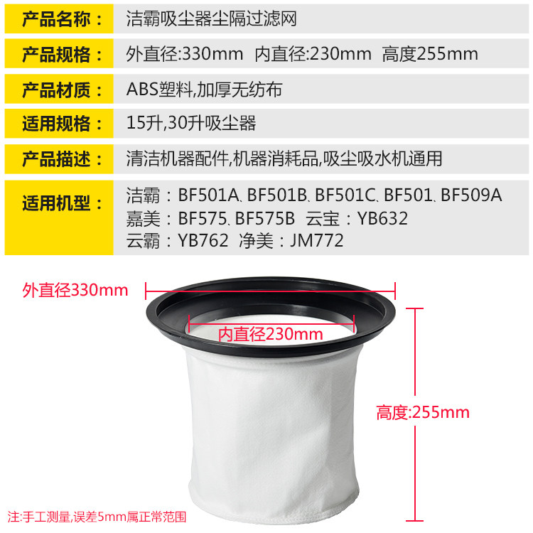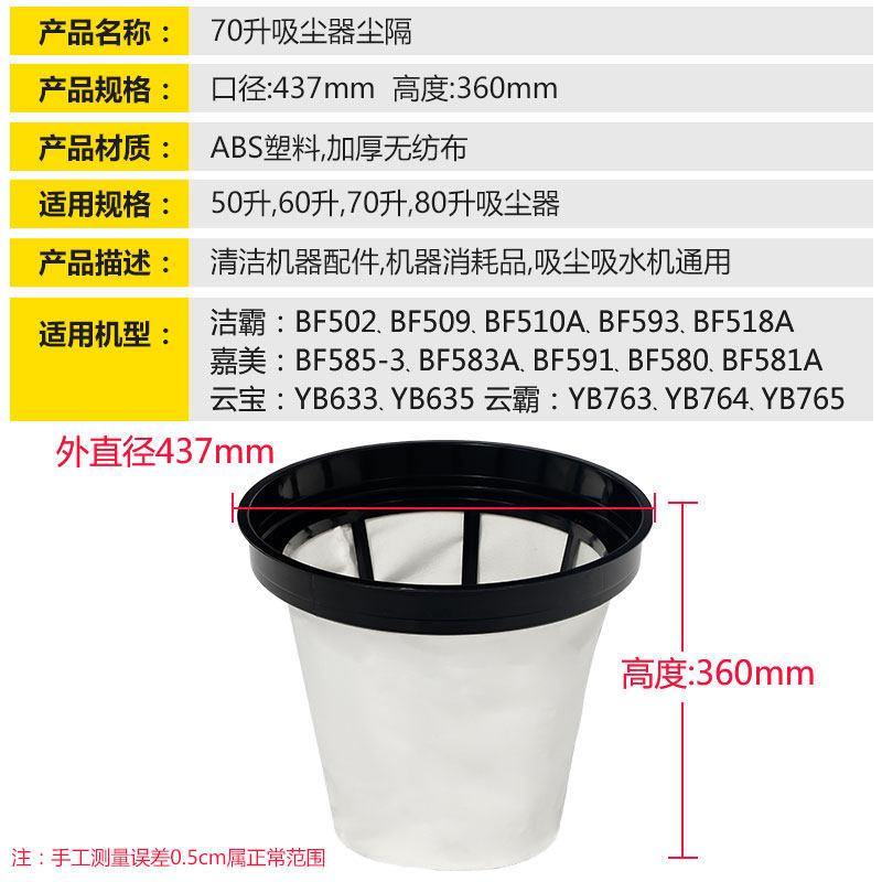 洁霸吸尘器配件尘隔尘袋BF502内胆防尘罩无纺布袋子滤芯70L过滤网