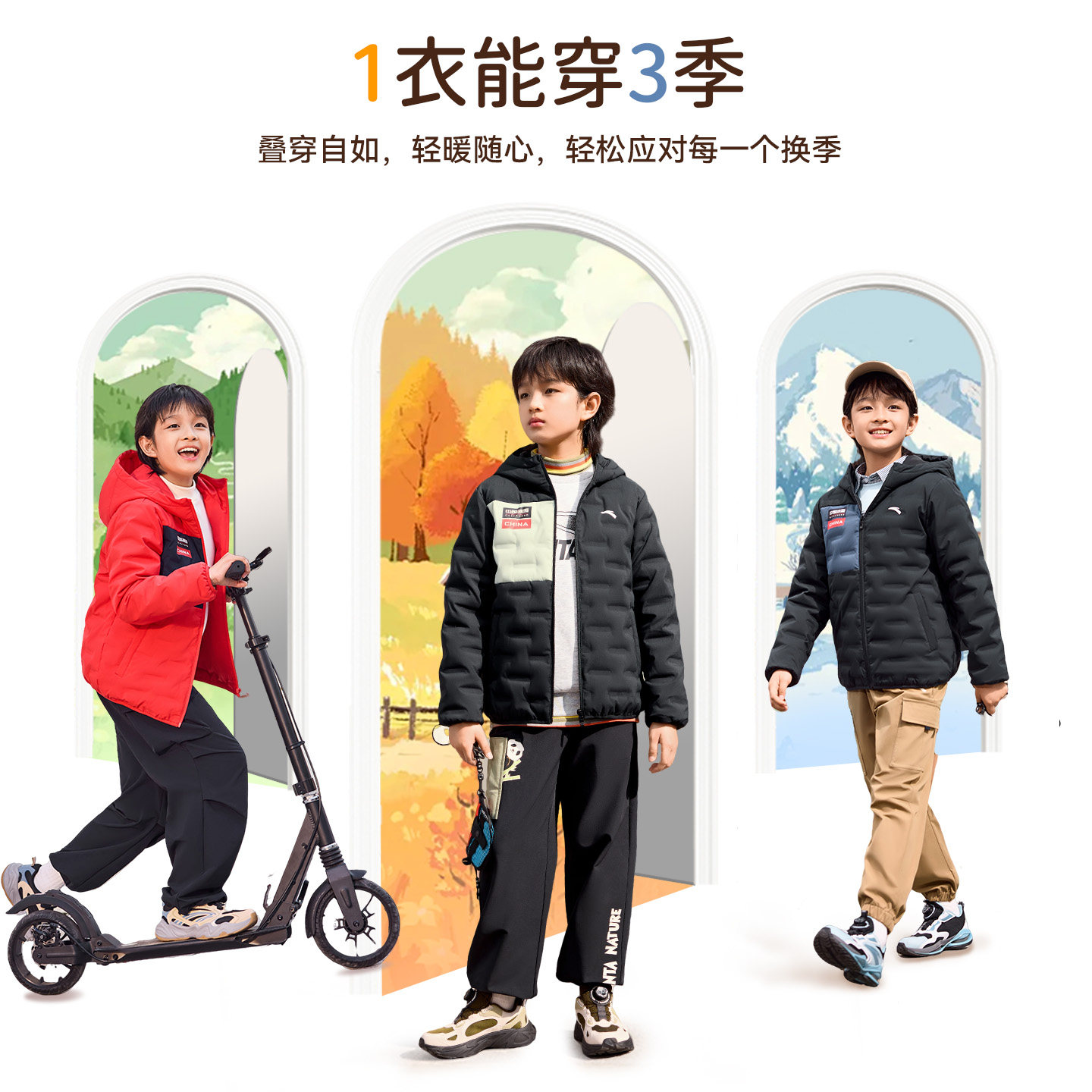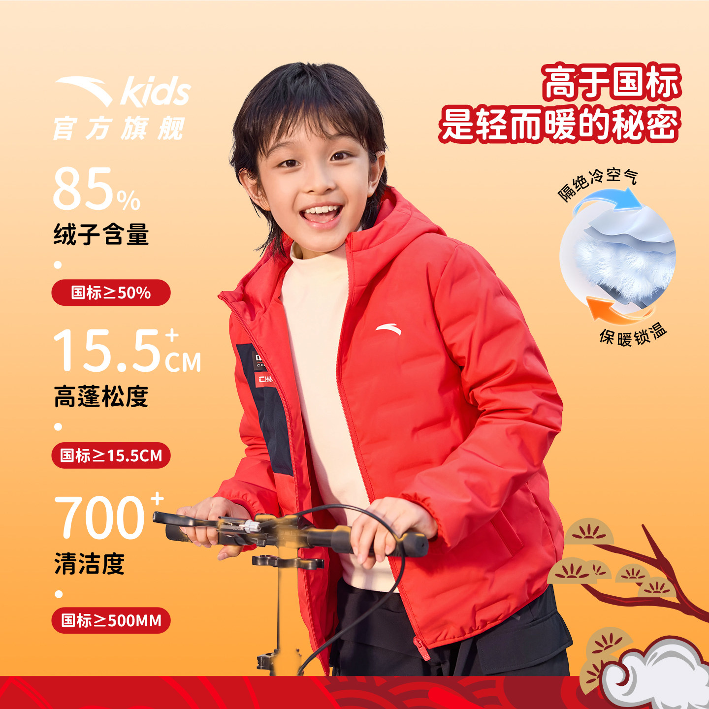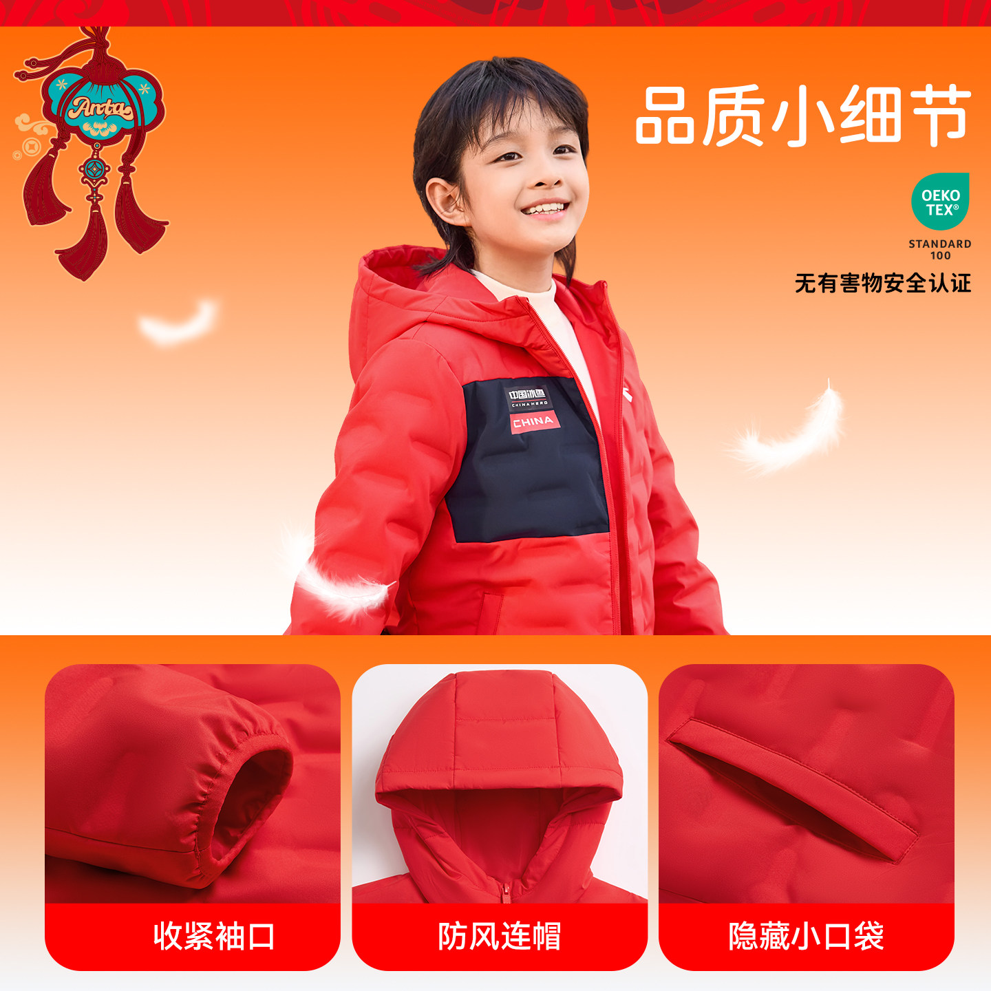 新年安踏儿童轻薄羽绒服男女童2025冬季新款连帽保暖加厚鸭绒红色
