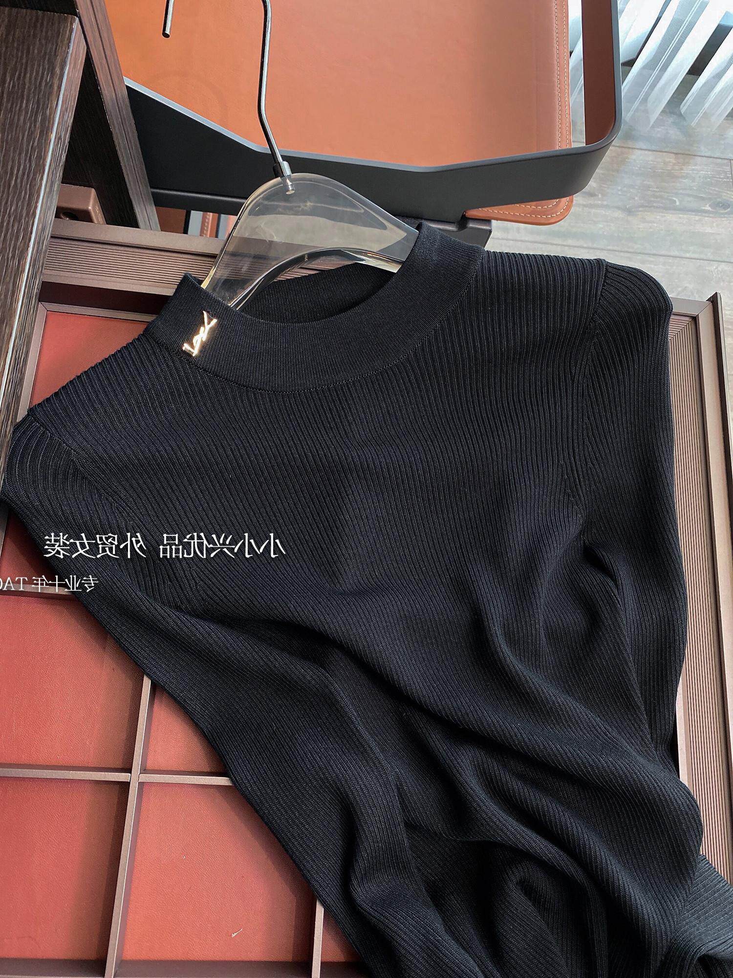 品牌专柜高端女装外贸品质老客精选金属logo修身真丝羊毛针织衫女