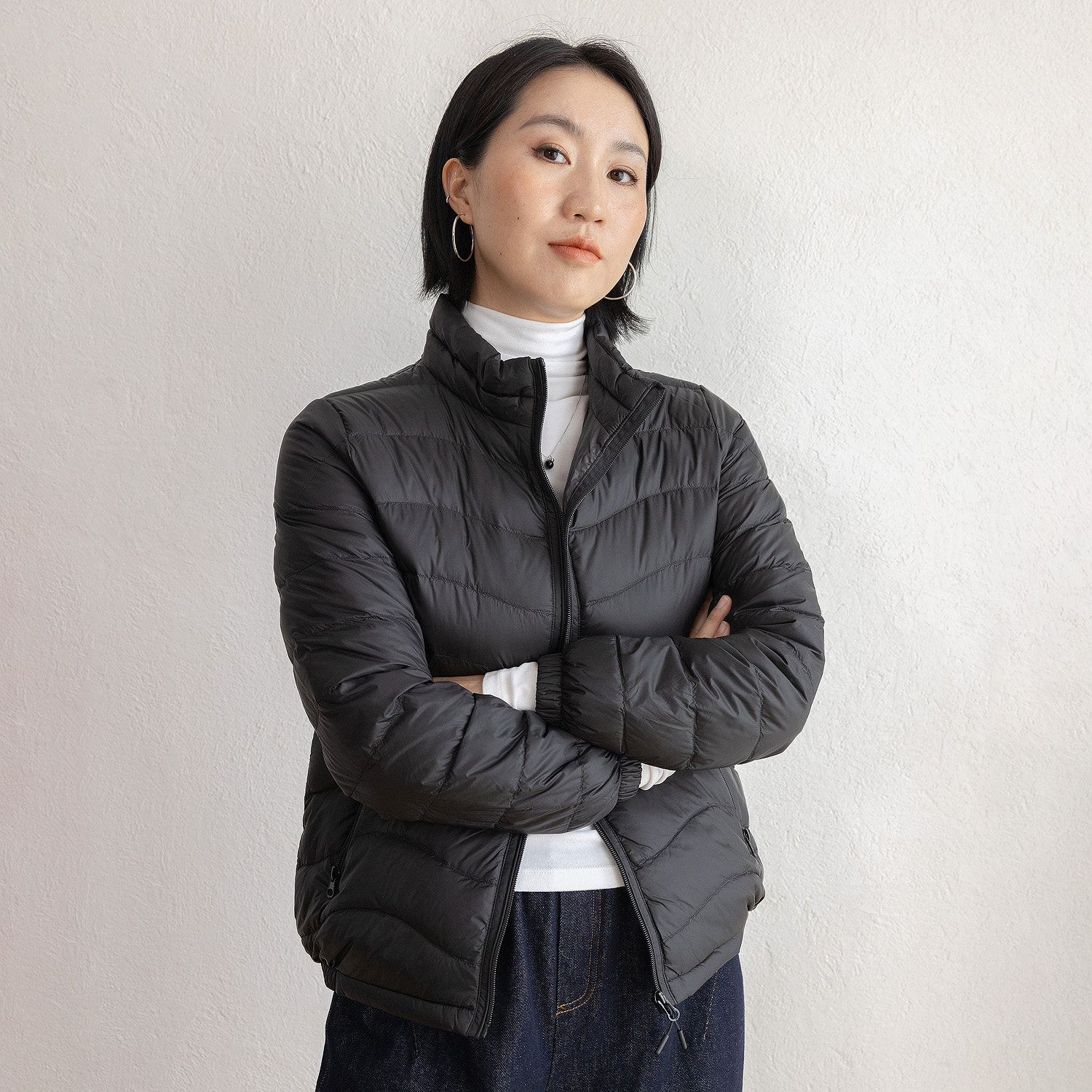 JENUNIQUE立领轻薄排骨羽绒服女冬季短款新款修身收腰鸭绒外套细