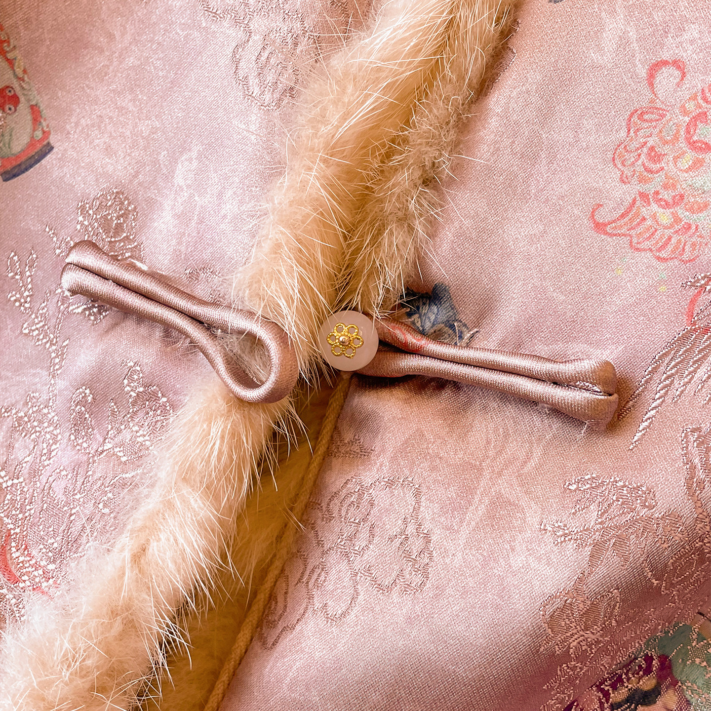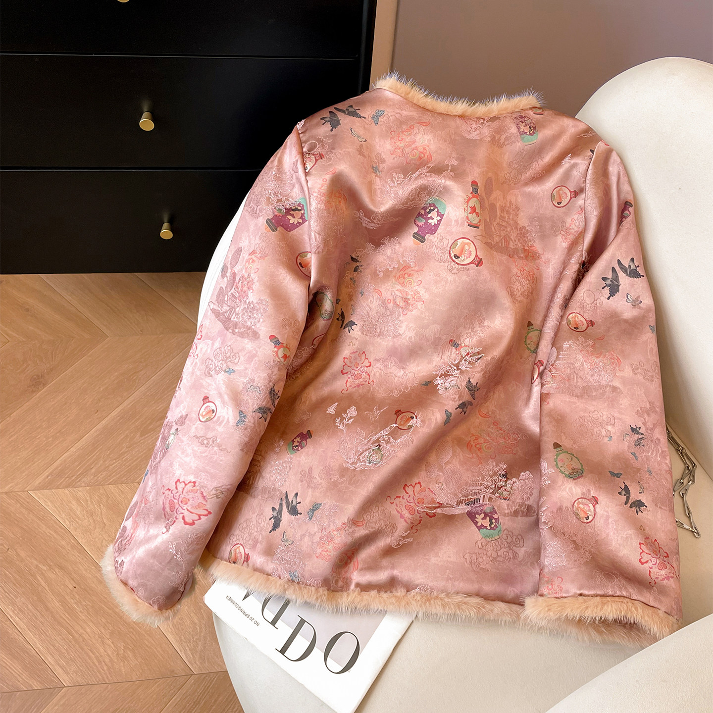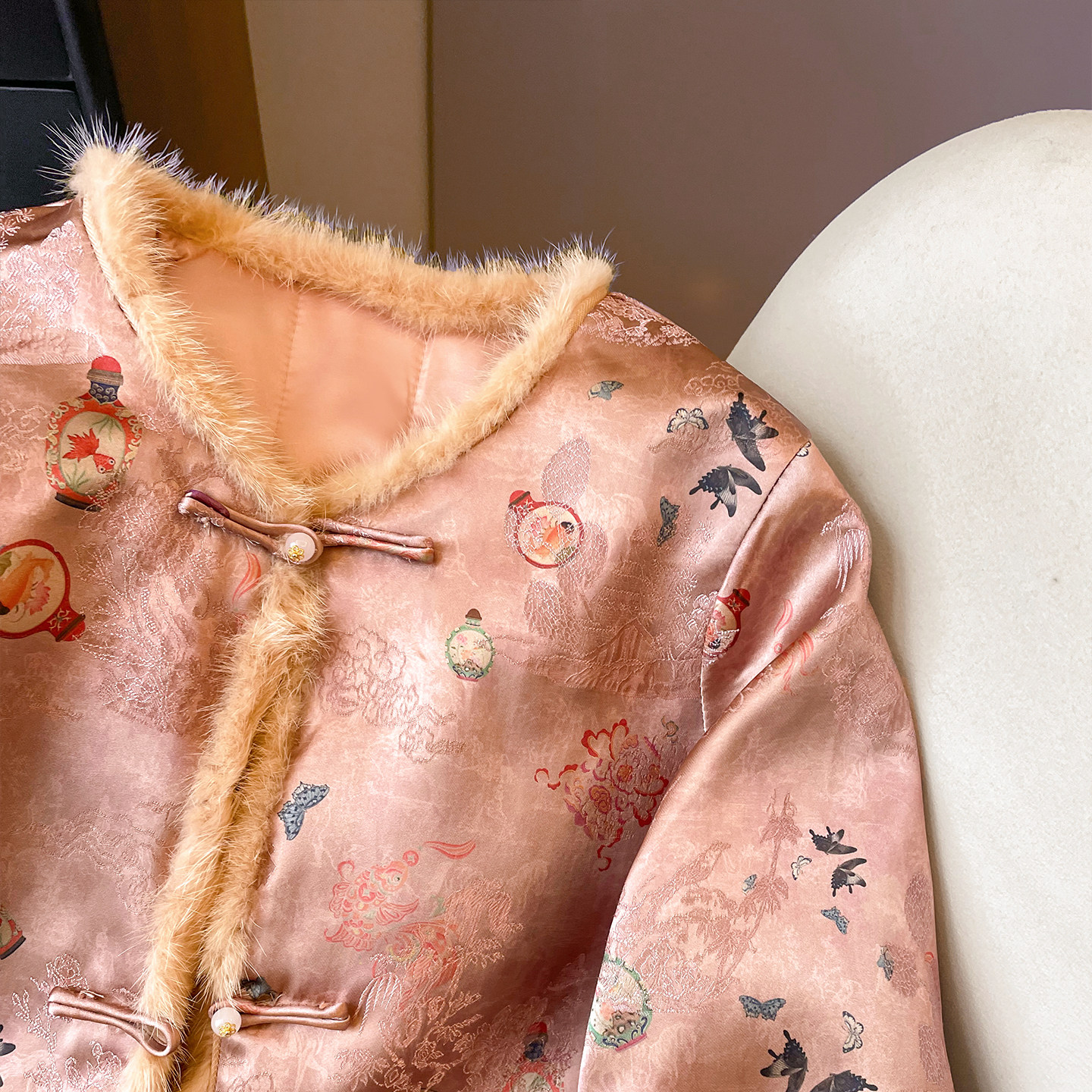 小C家 新中式国风盘扣提花上衣女款2026新款冬季毛边坎肩夹棉外套