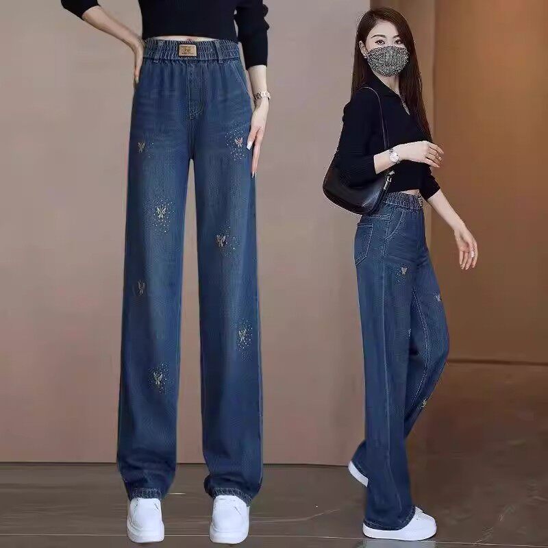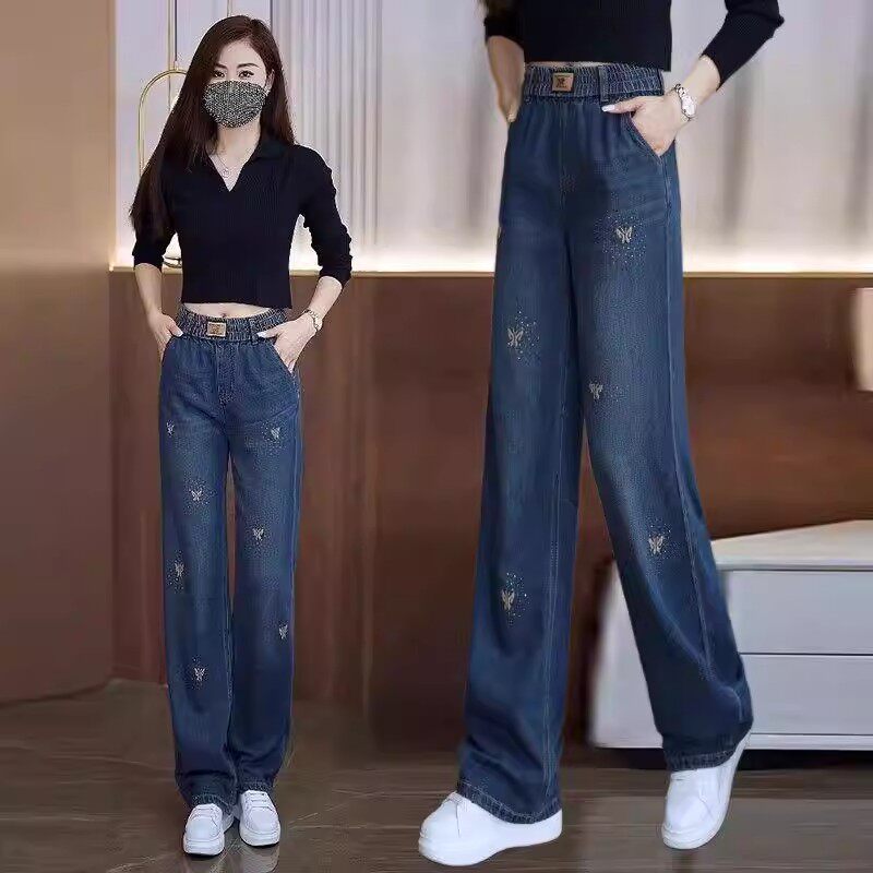 广州新塘牛仔裤2026年新款女春阔腿裤女款春秋裤子松紧腰遮肉显瘦