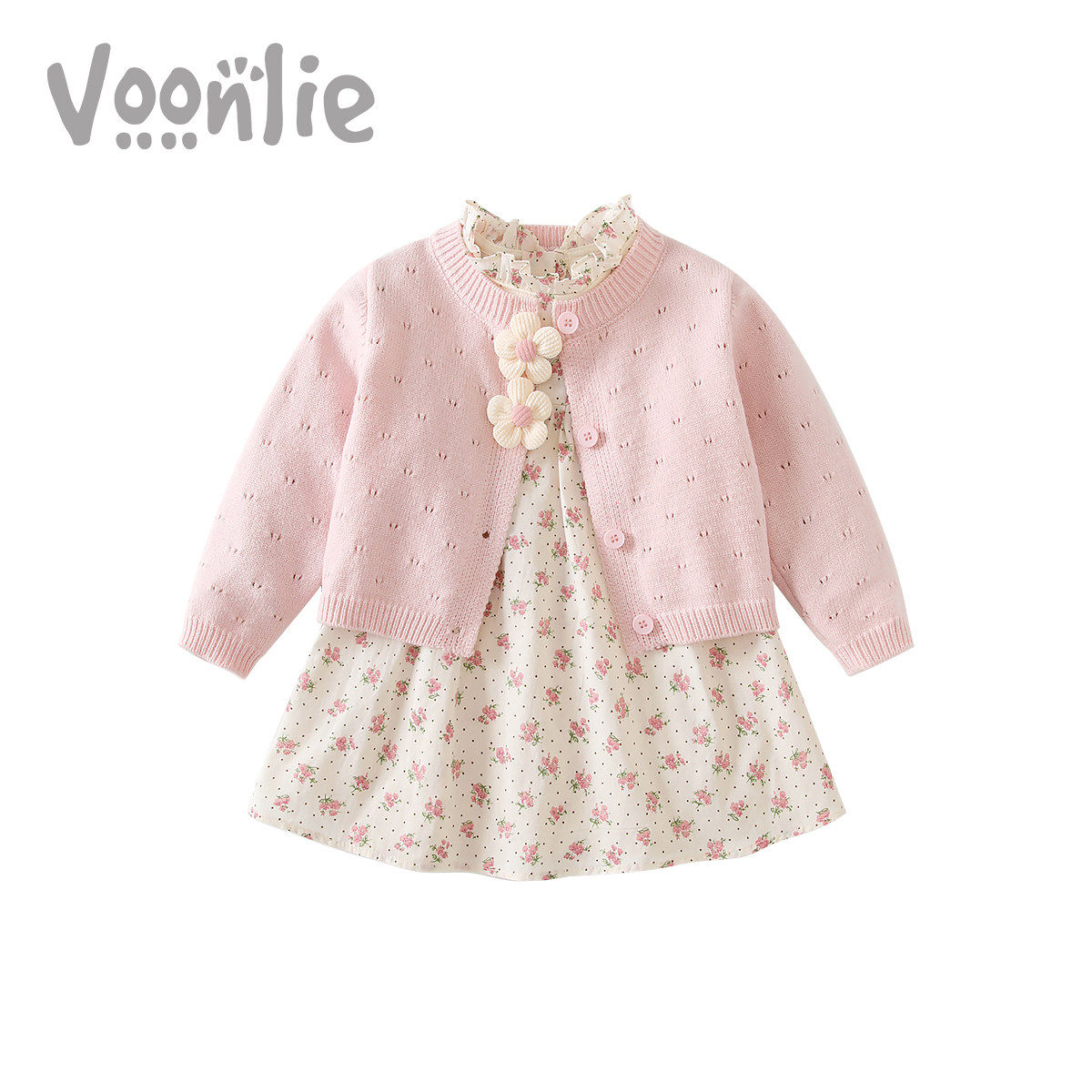 女童连衣裙春装2026新款洋气儿童公主裙宝宝周岁礼服碎花套装春秋