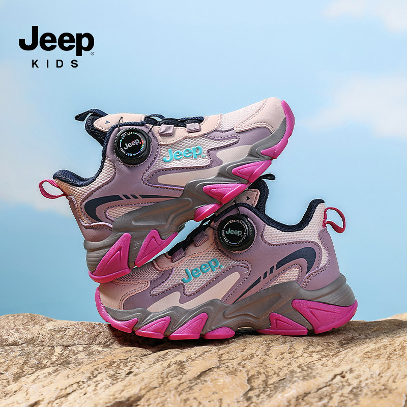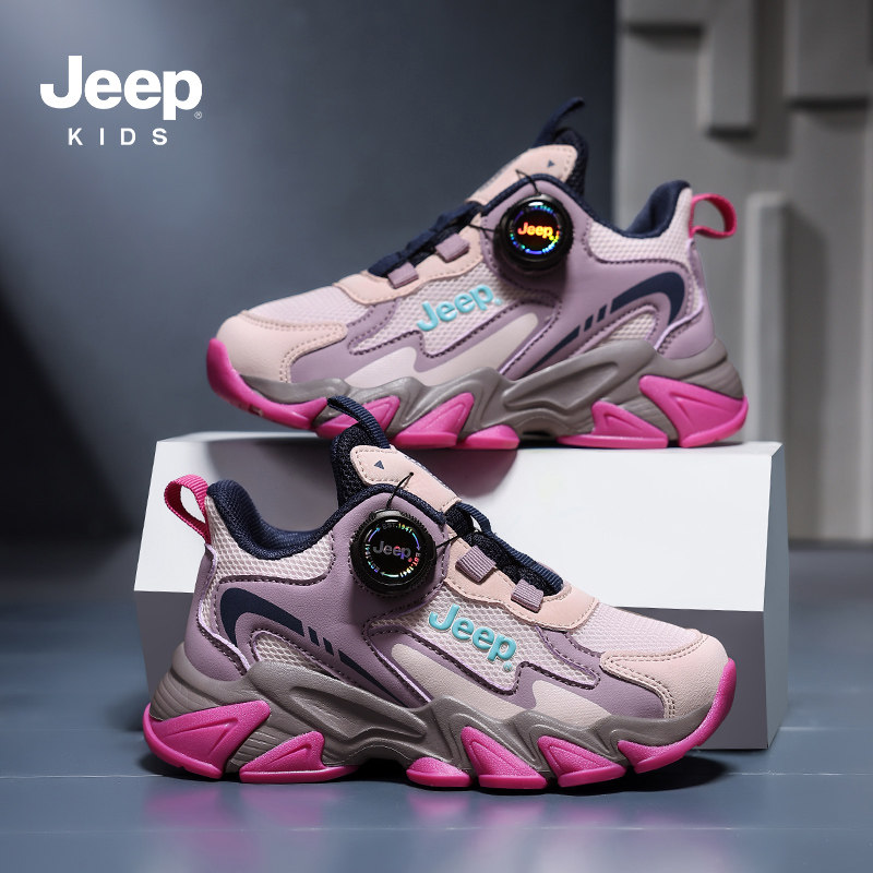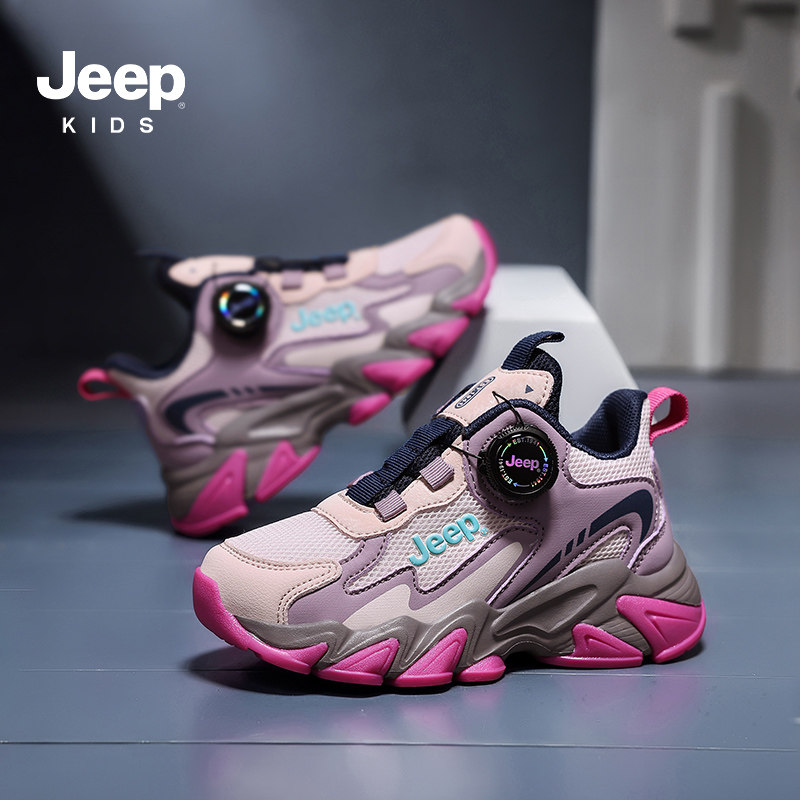 Jeep女童篮球鞋子春夏网面透气2026新款防滑软底儿童旋钮扣运动鞋