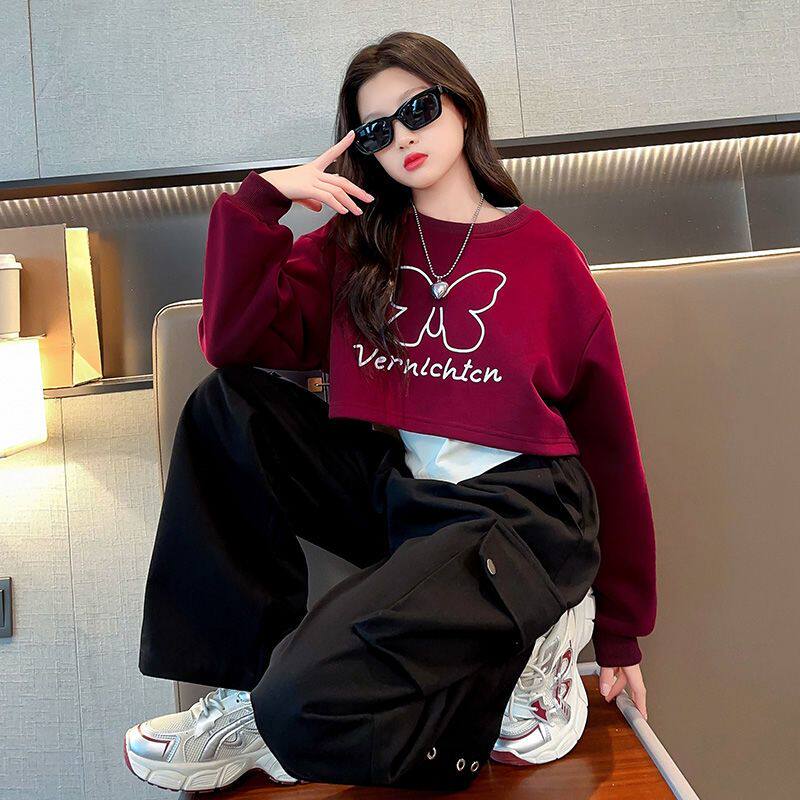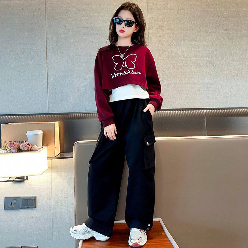 女童春秋季2025新款运动卫衣中大儿童女孩秋装洋气工装裤三件套装
