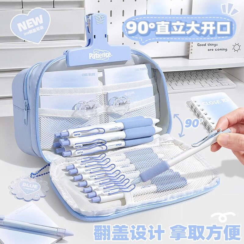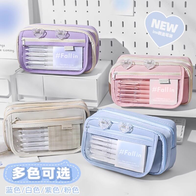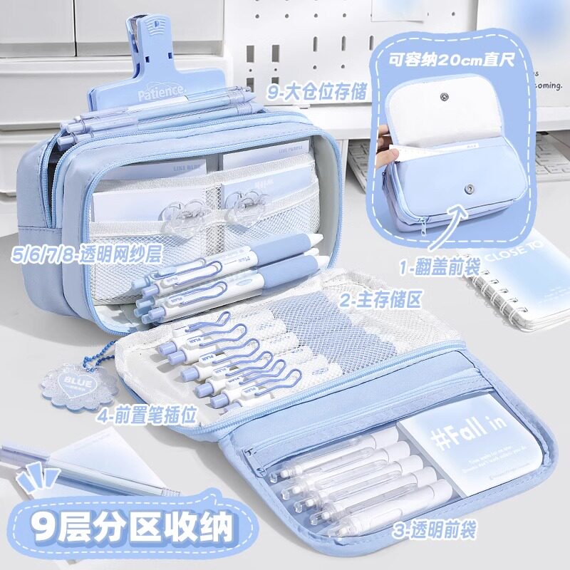 九层大容量笔袋女孩2026新款ins可爱奶油风笔袋高颜值小学生文具盒初中生女生铅笔盒小众简约韩系文具袋