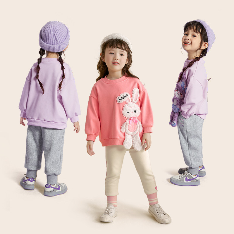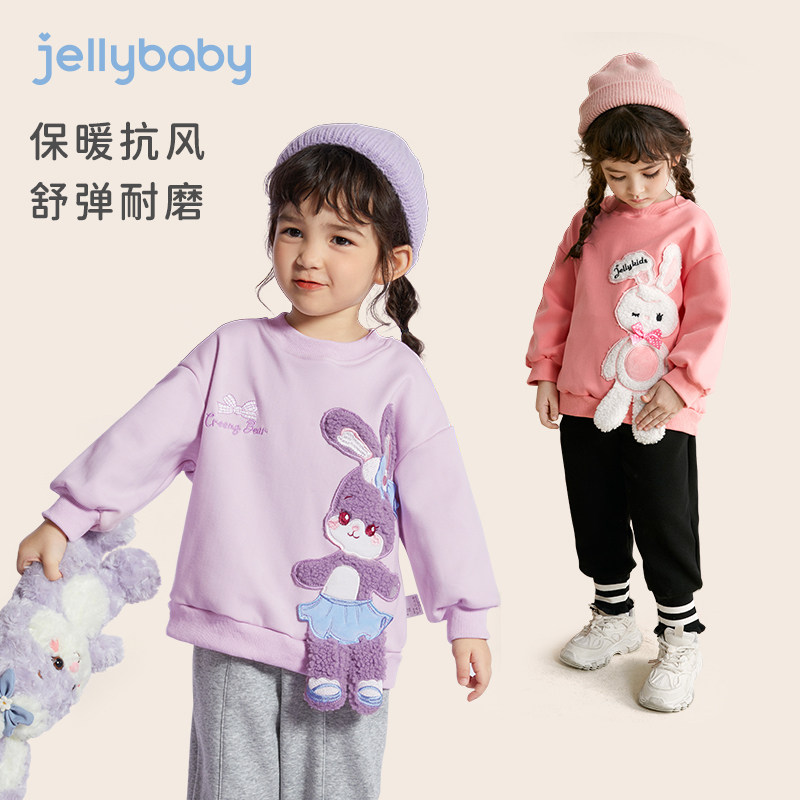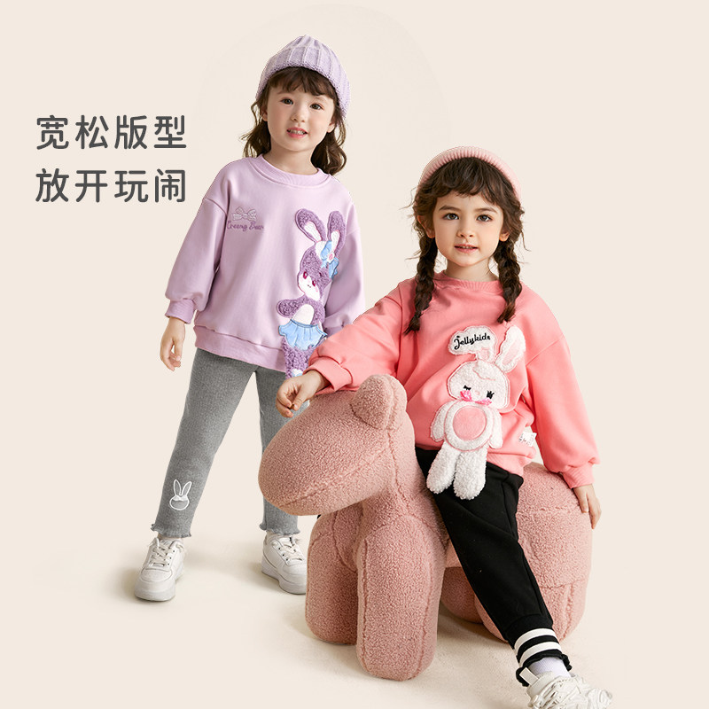 [加绒蓄热]女童打底衫小童冬装女孩冬季紫色上衣儿童秋冬新款卫衣
