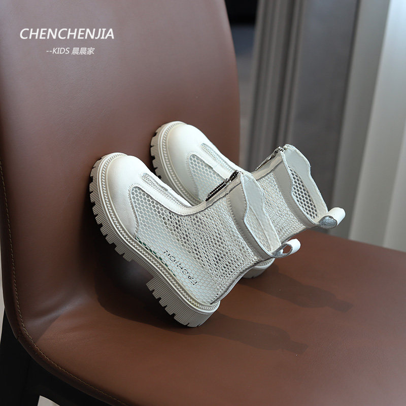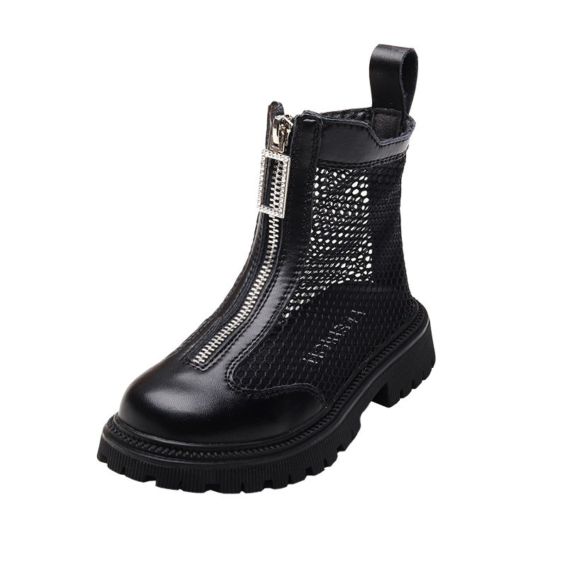 女童马丁靴夏季新款男童透气镂空薄款靴子黑色儿童演出表演前拉链