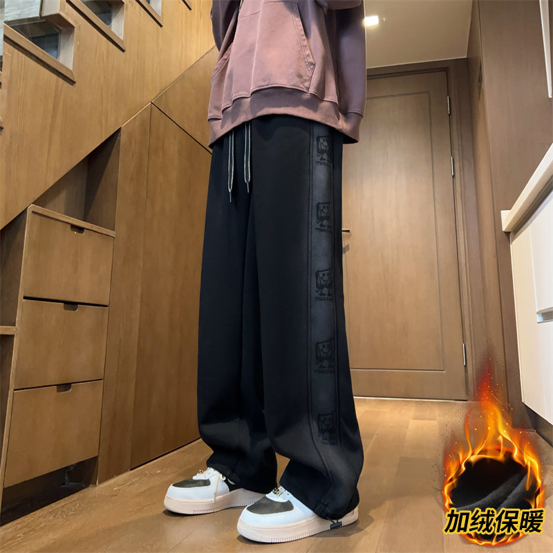 秋冬季青少年学生长裤子男孩帅气休闲运动裤大童加绒加厚卫裤直筒