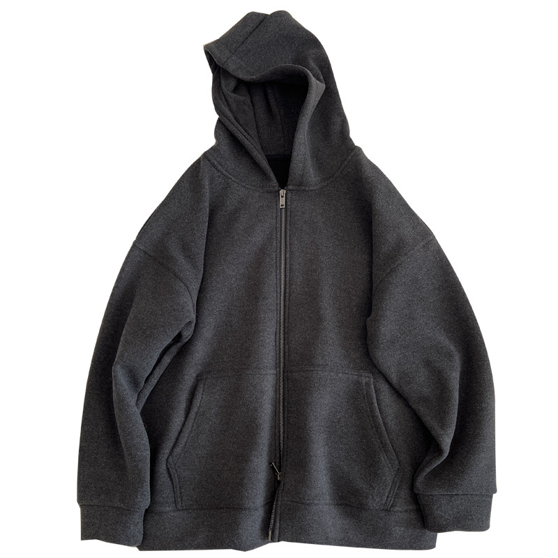 韩版复古深灰色连帽开衫卫衣女宽松加绒加厚拉链外套冬季新款学生