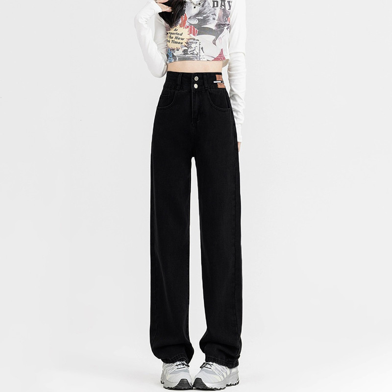 高腰阔腿牛仔裤女款小个子春秋季复古直筒显瘦宽松百搭拖地长裤子