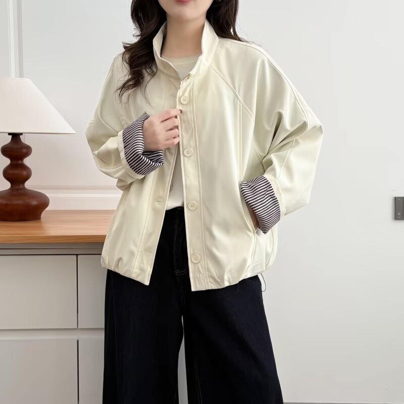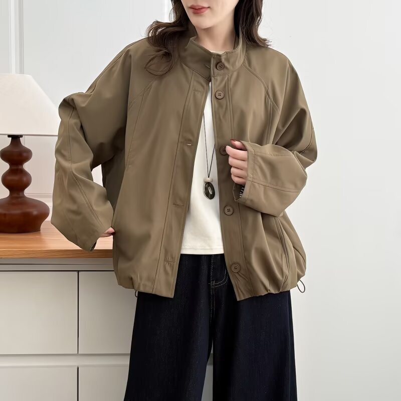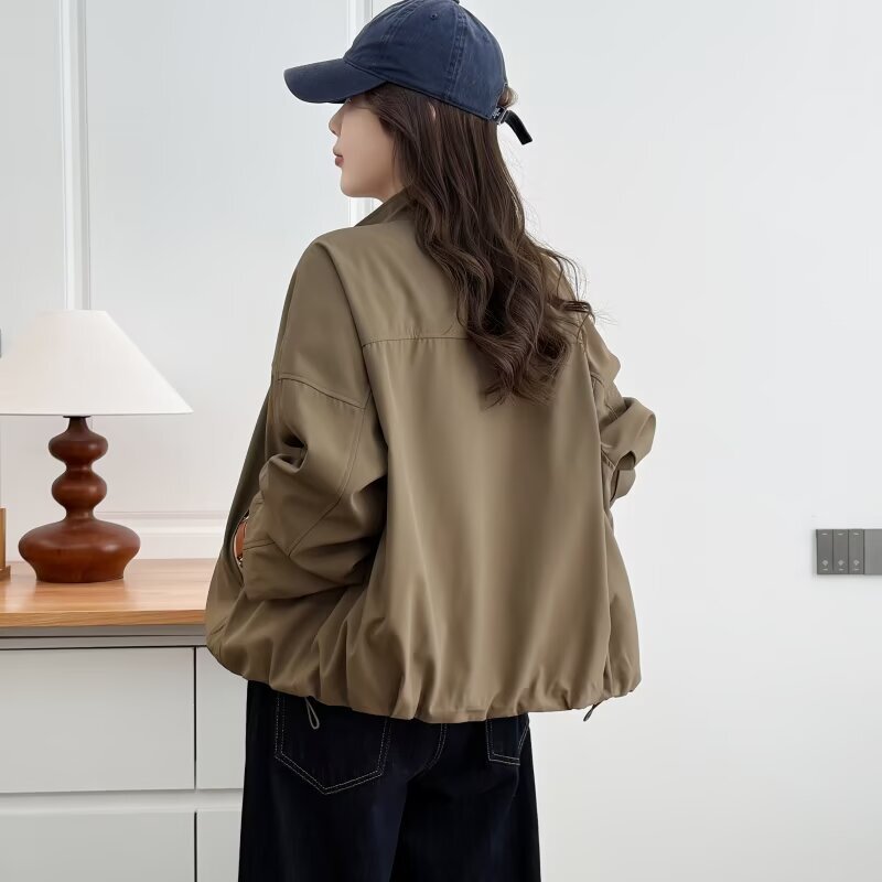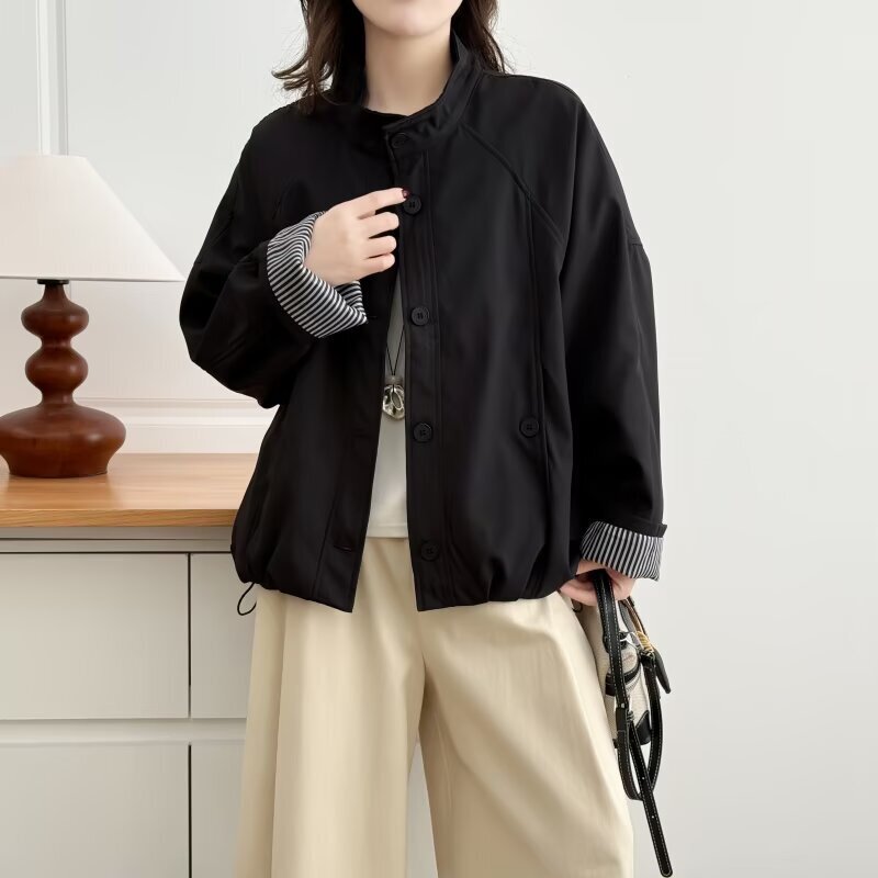 2026新款宽松200斤大码女装春秋季立领休闲夹克开衫外套女款爆款
