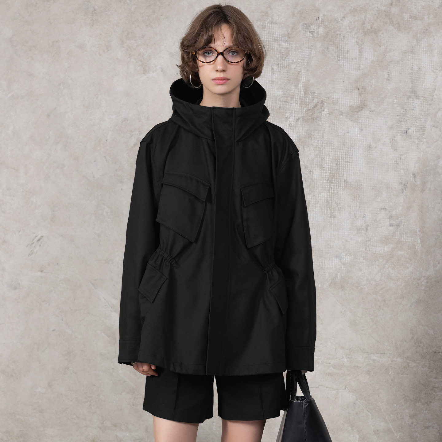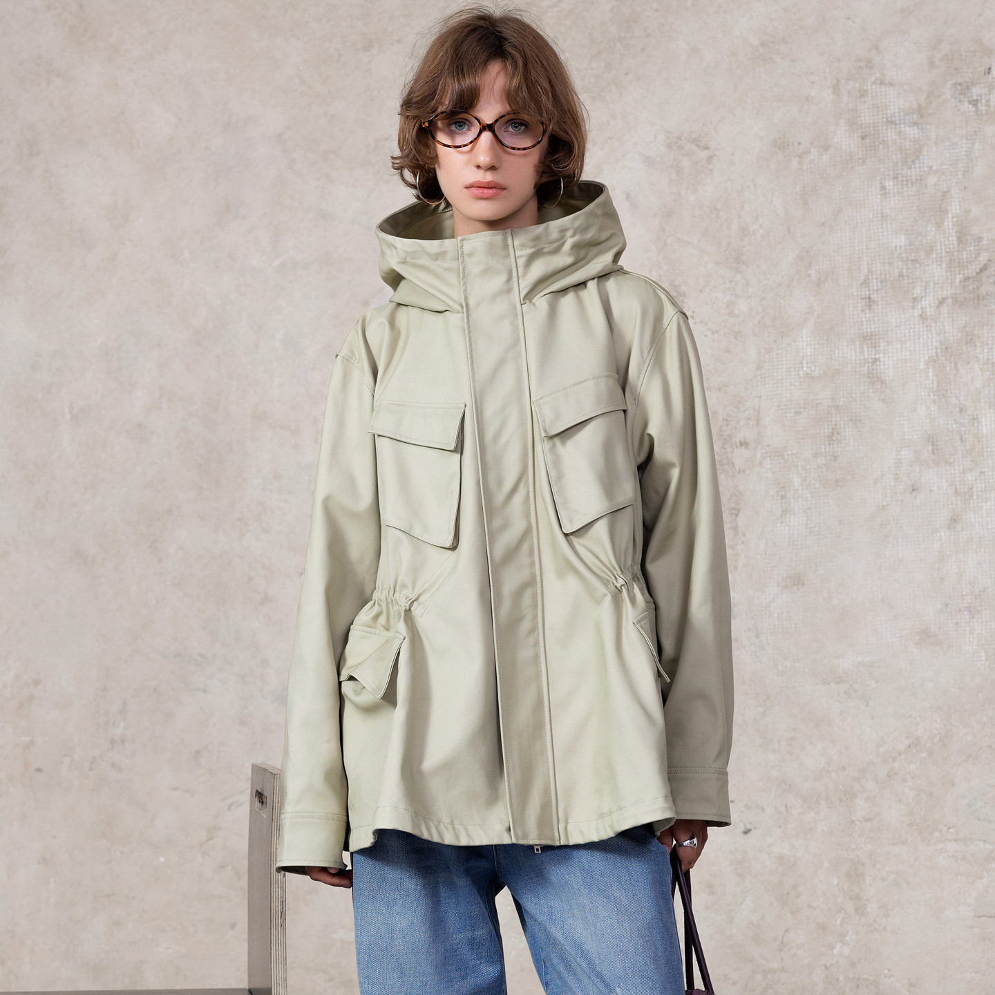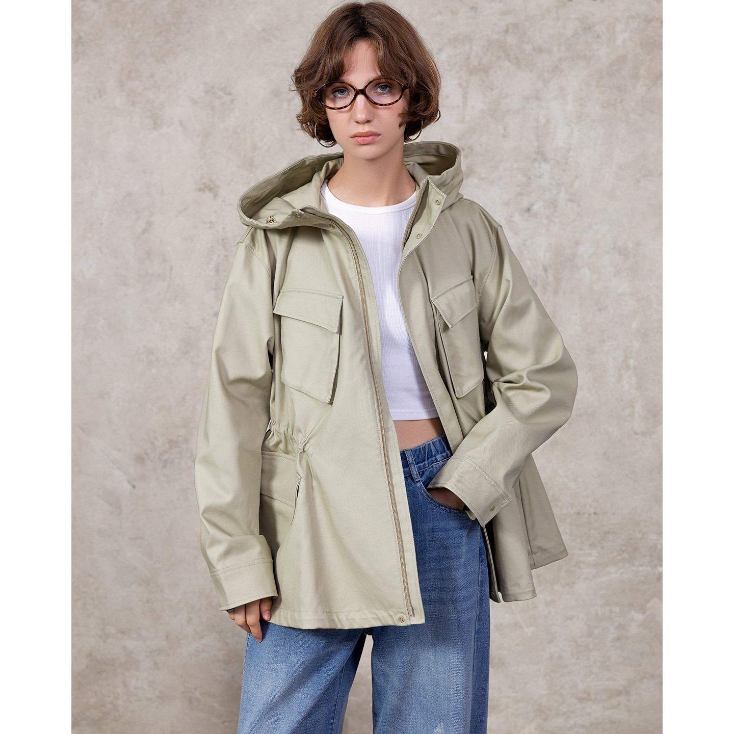 风衣女款2026新款春秋季中长款立领收腰连帽宽松休闲夹克工装外套