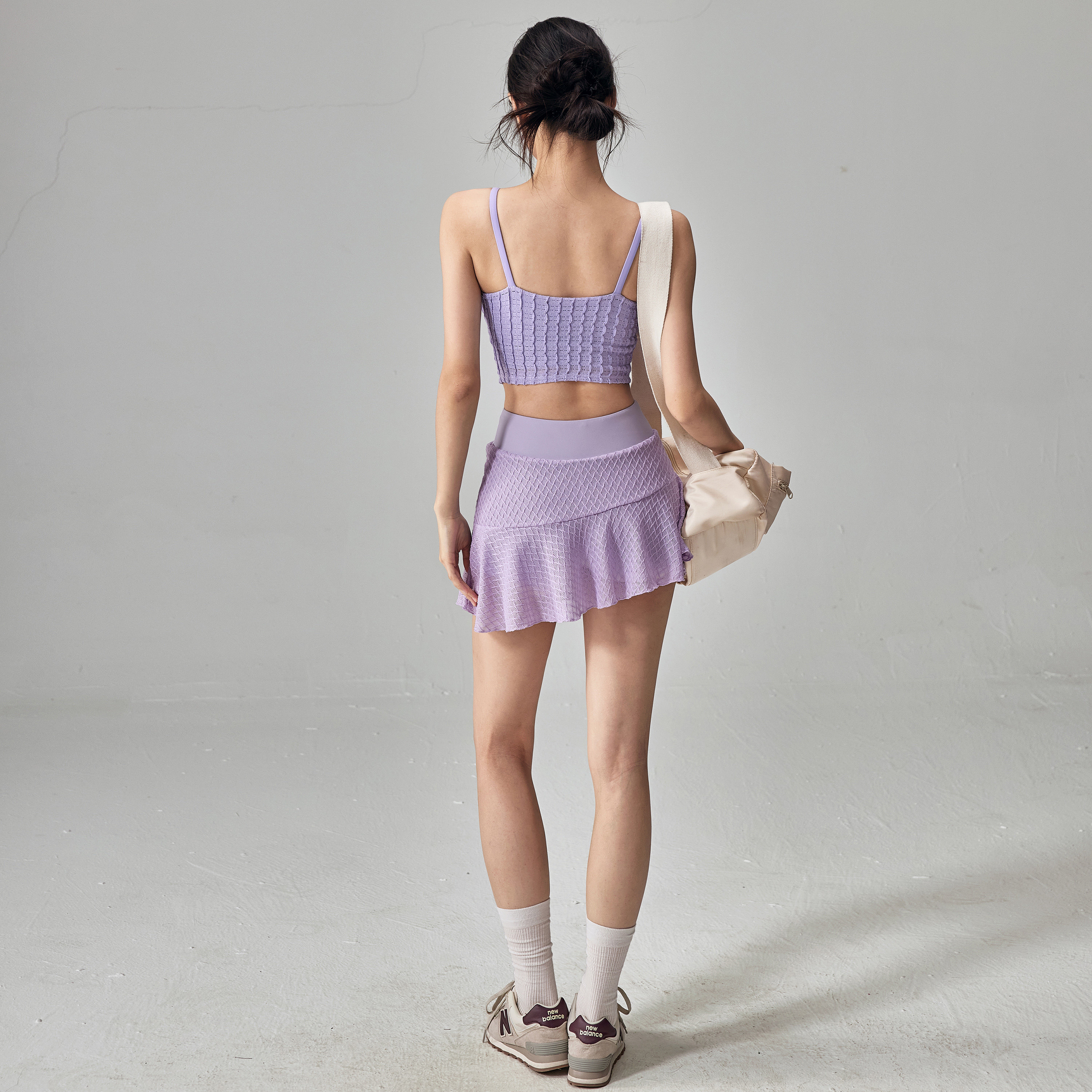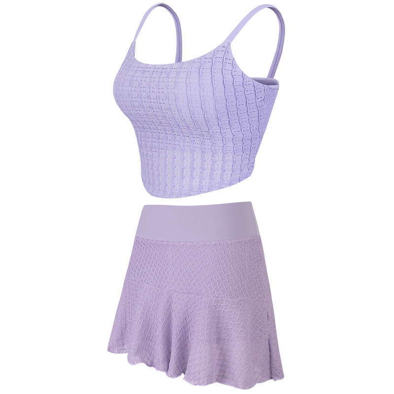 健身女孩夏季瑜伽服套装高级感带胸垫运动背心防走光网球裙两件套