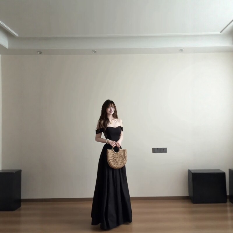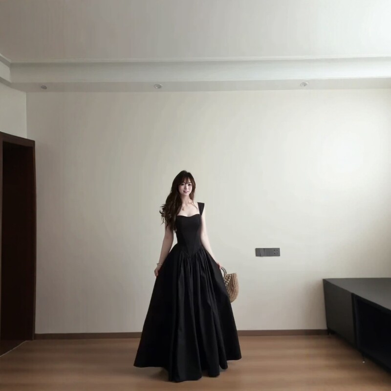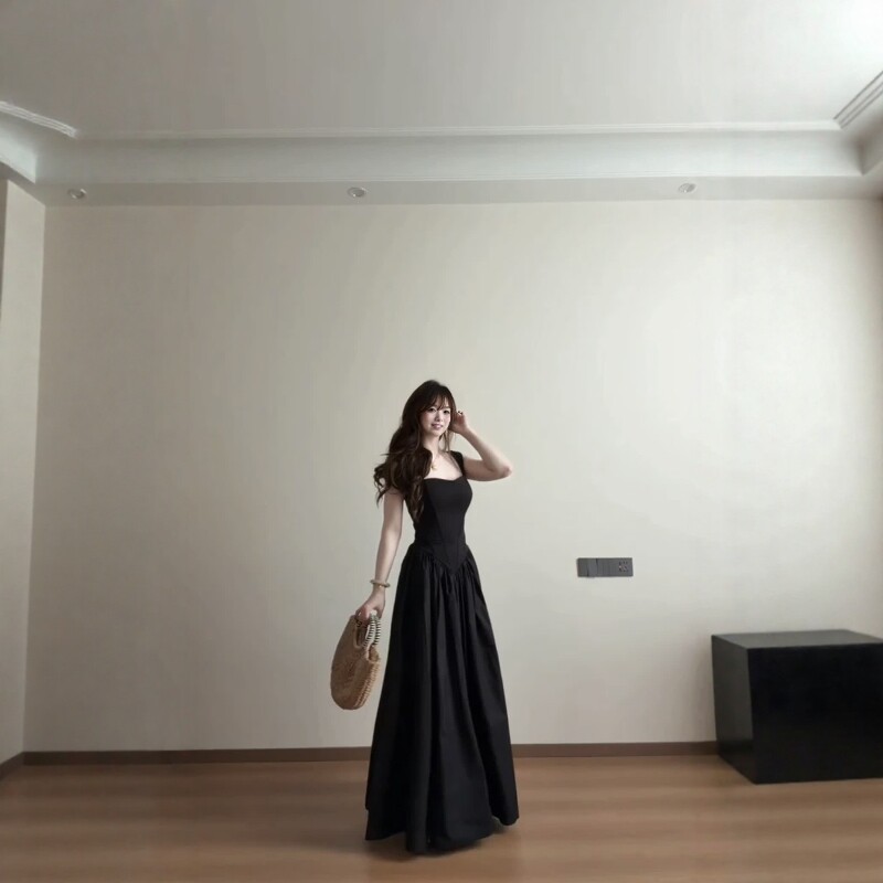 法式赫本风黑色收腰连衣裙女2026夏季长裙轻奢高级感显瘦A字裙女