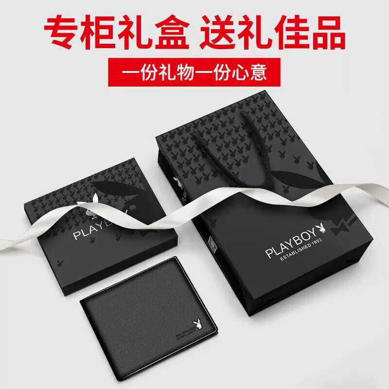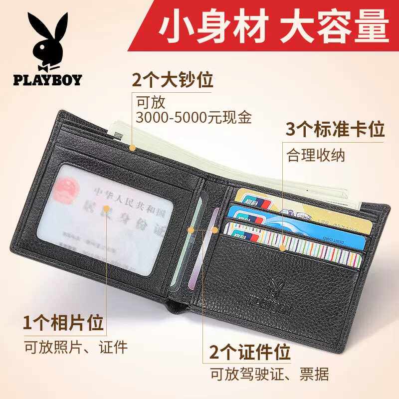 花花公子男士短款真皮钱包2024新款简约牛皮钱夹青年薄款皮夹