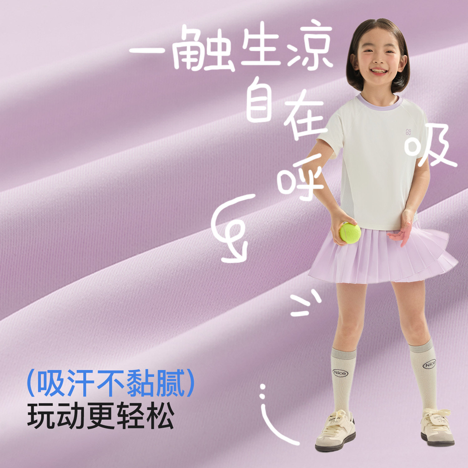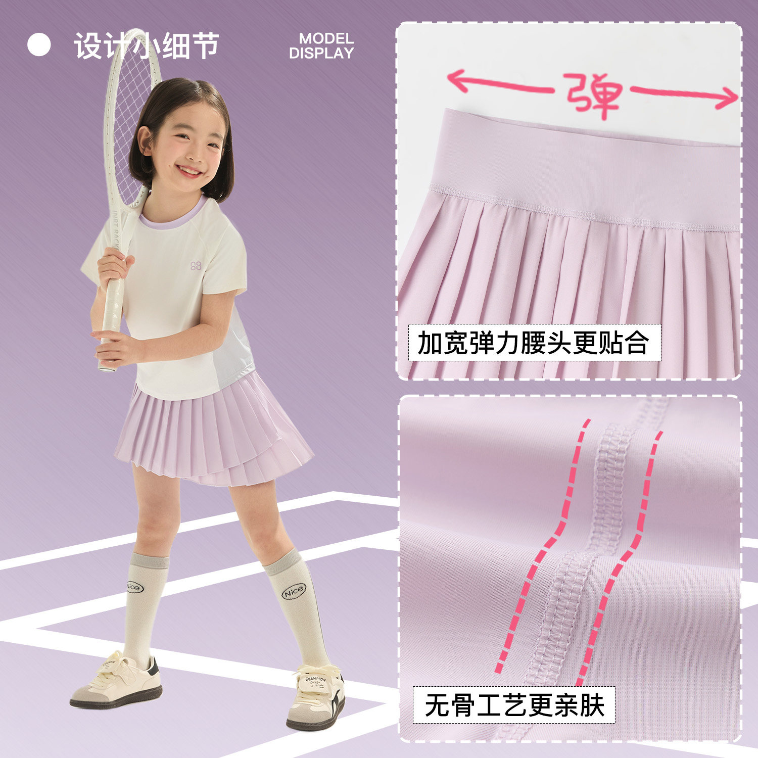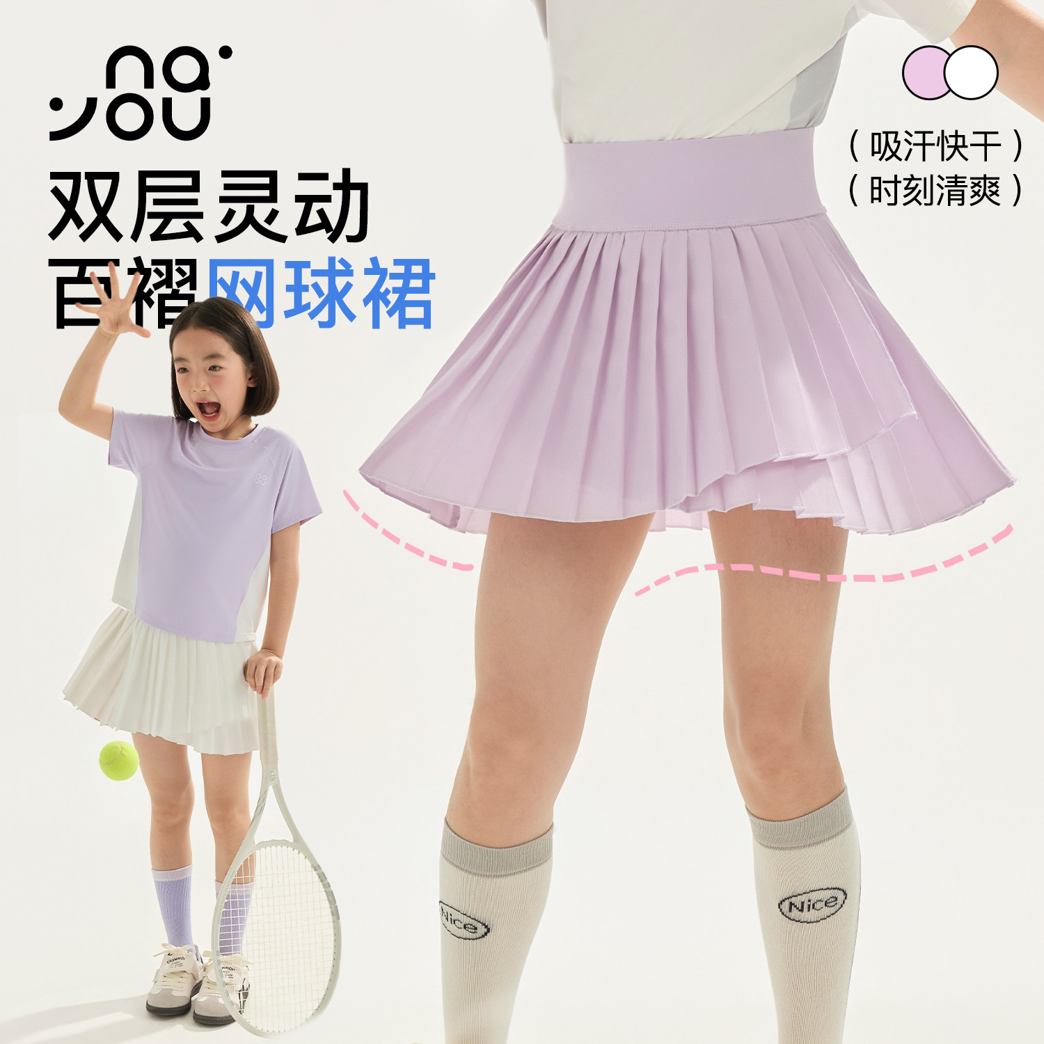 纳柚26女童网球裙夏季防走光儿童训练羽毛球白色半身裙速干百褶裙