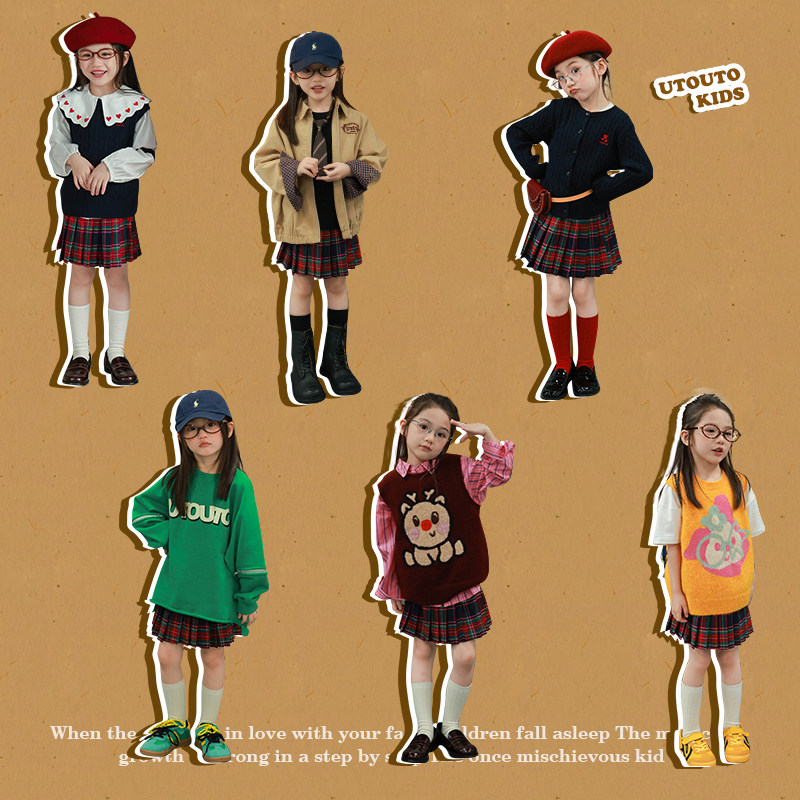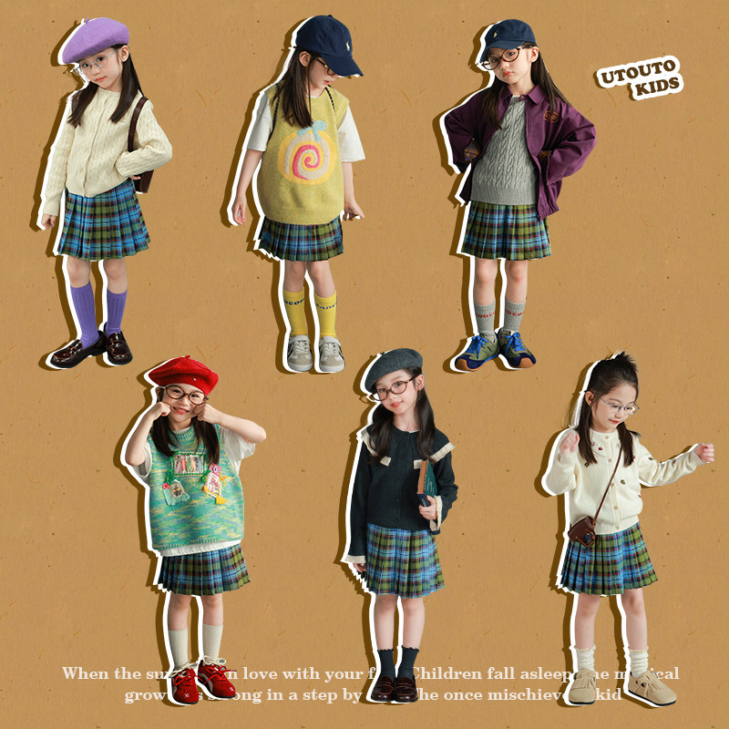 大耳象女童格子百褶裙裤秋季新款宝儿学院风半身加厚甜美短裙子