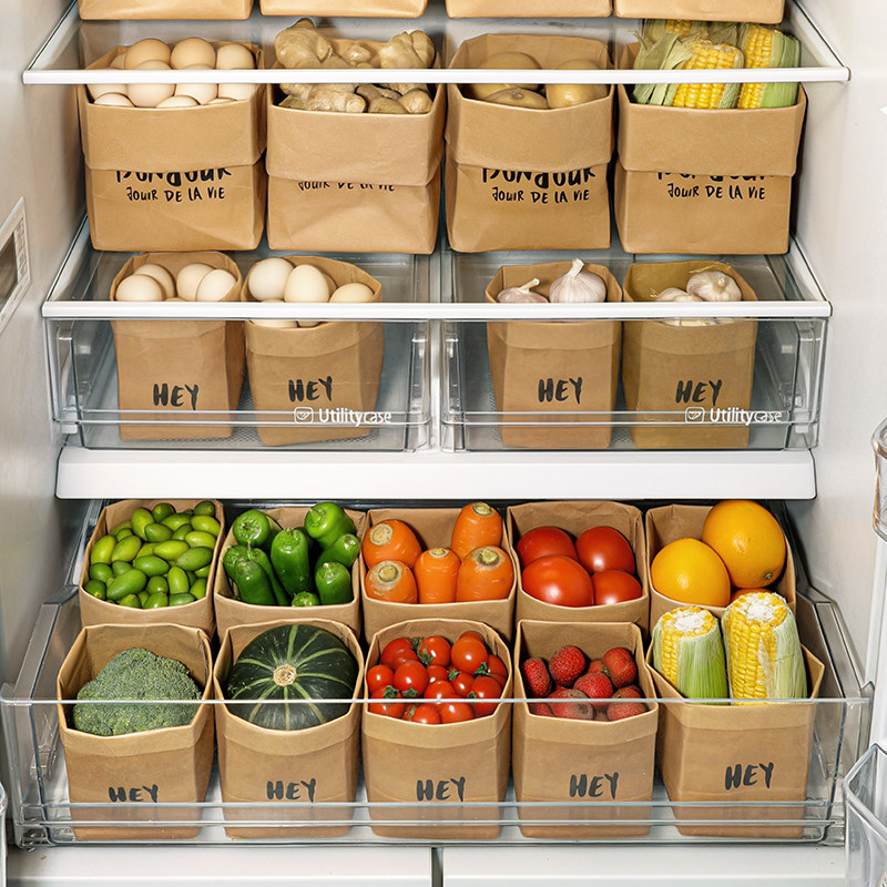 加厚牛皮纸袋厨房果蔬分类收纳袋冰箱专用环保可水洗防水食品袋子