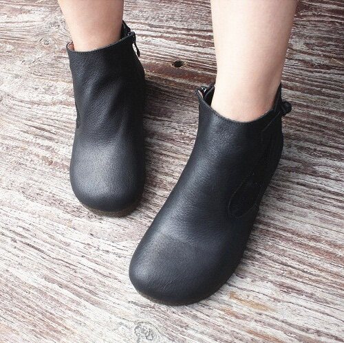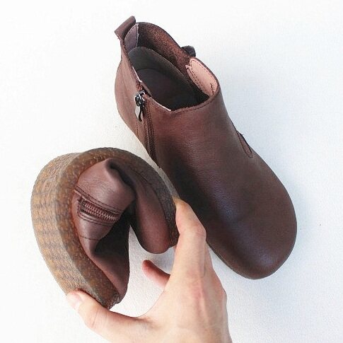 秋冬季外贸真皮复古森系女鞋头层牛皮牛筋底原单手工高帮单鞋短靴