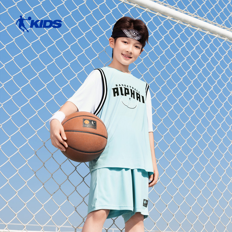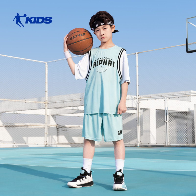乔丹童装男童夏季速干套装运动短袖2026新款两件套夏装儿童篮球服