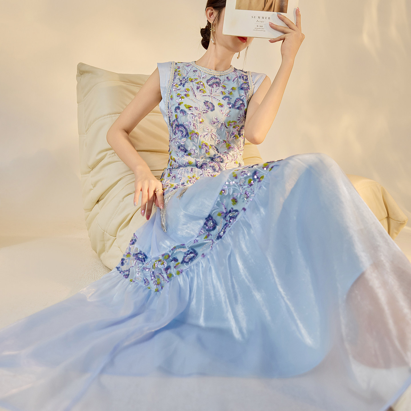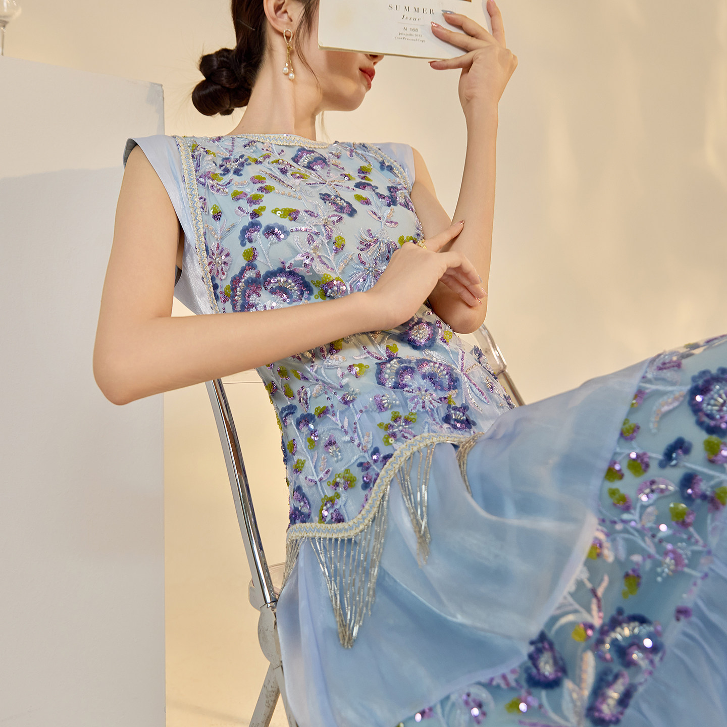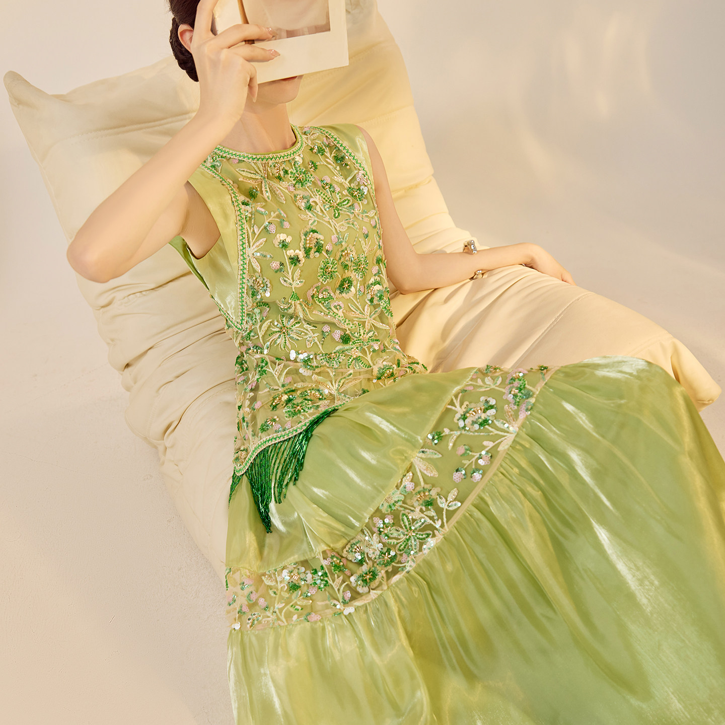 311线报网描述:新中式钉珠刺绣国风时尚高级感轻奢流苏长裙