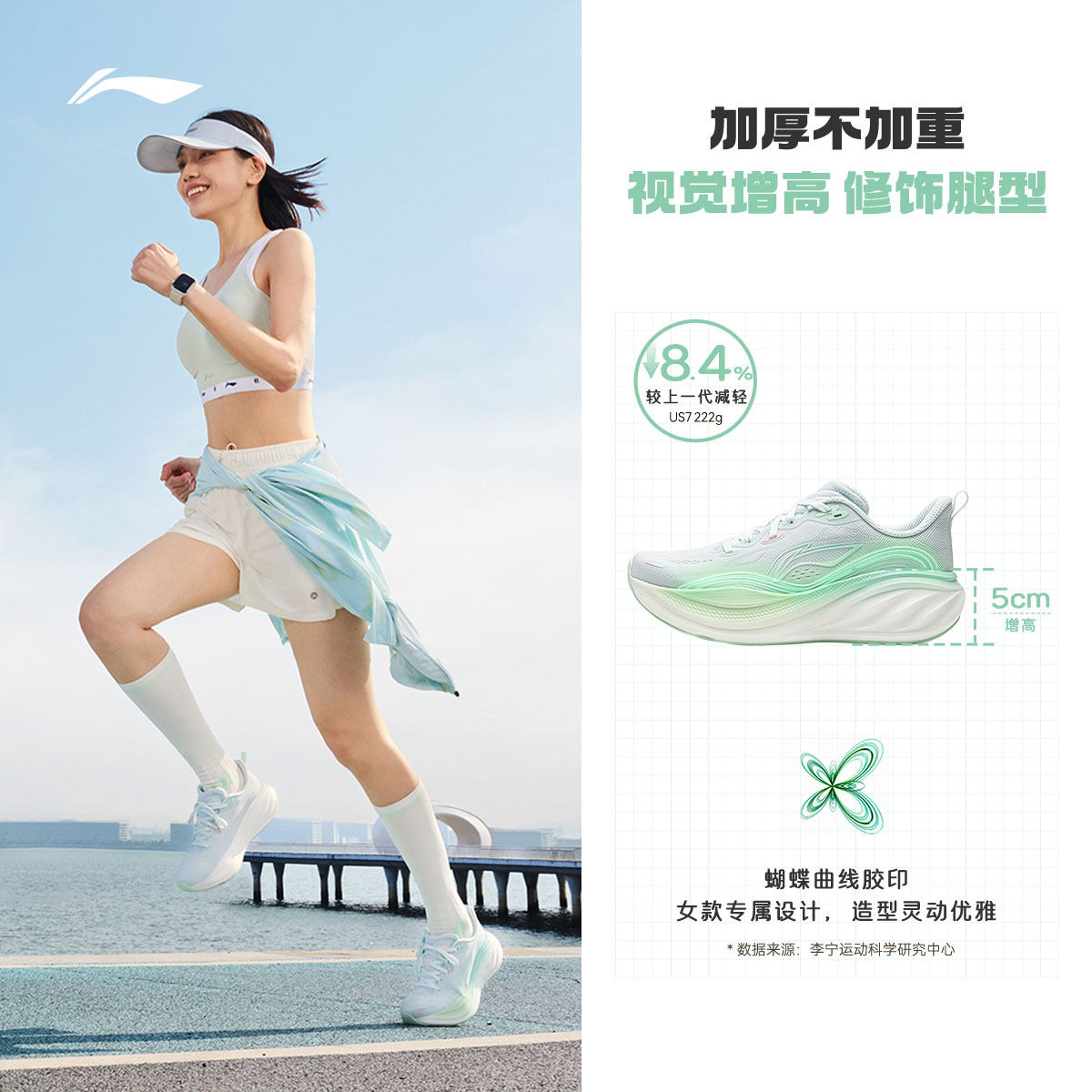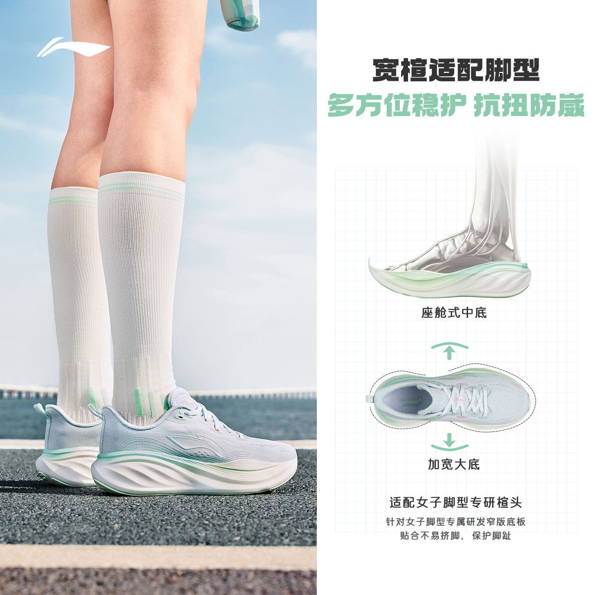 李宁悠然2丨专业减震跑步鞋女2026新款厚底宽楦慢跑鞋通勤运动鞋