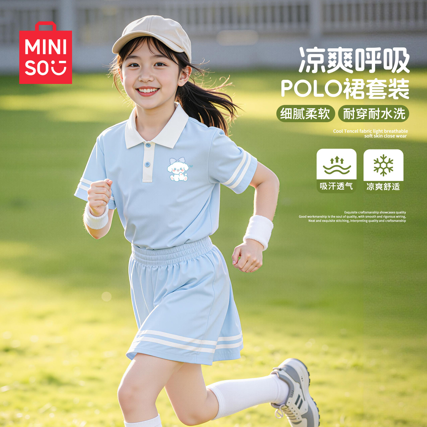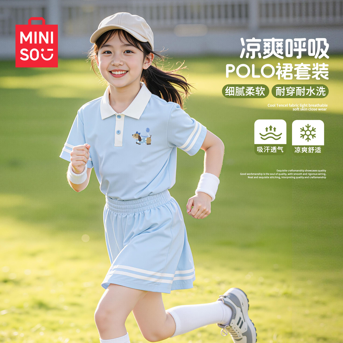 名创优品女童夏装套装2026新款薄款速干女孩polo衫洋气儿童短裙夏