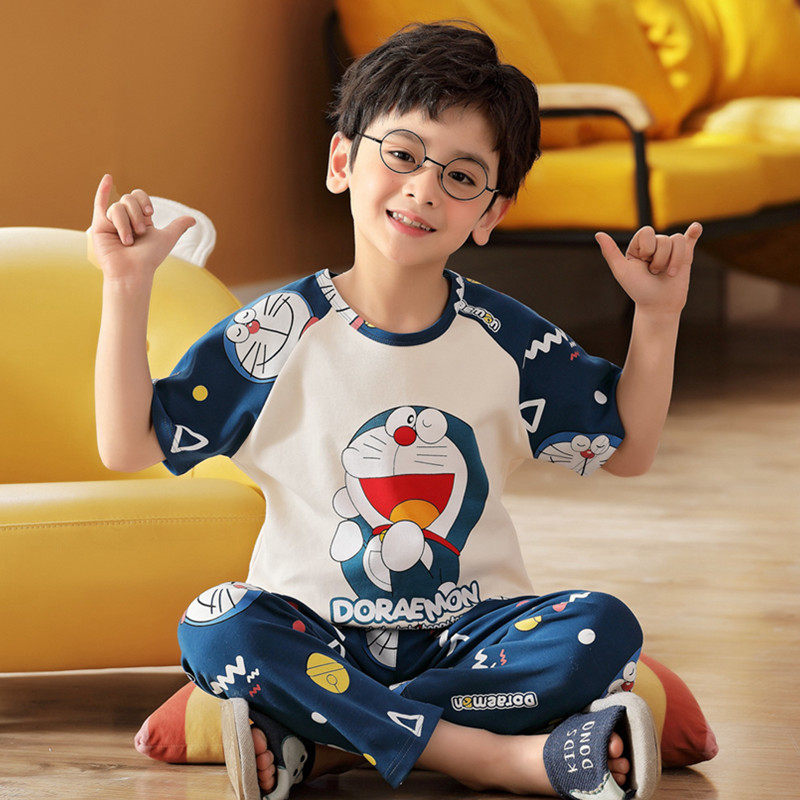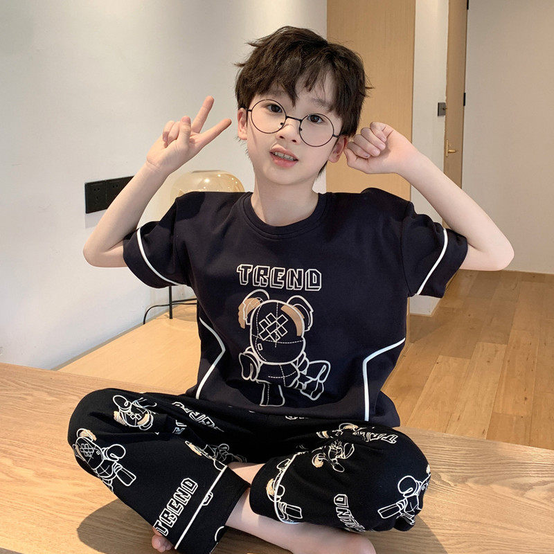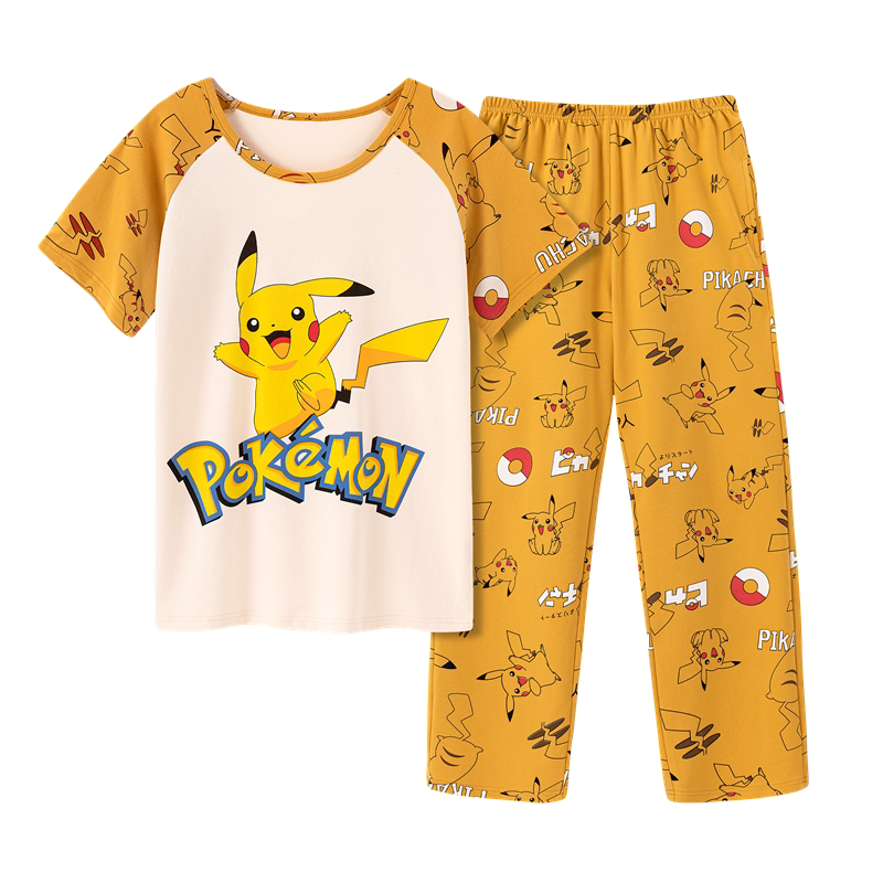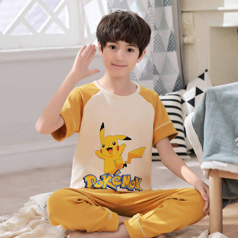 皮卡丘儿童睡衣男孩夏季纯棉短袖长裤男童宝可梦春秋款套装家居服