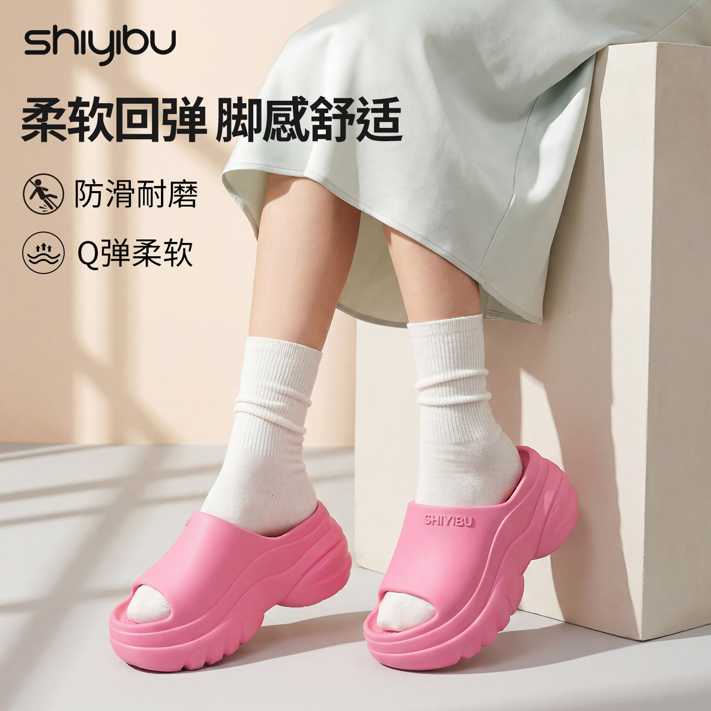 311线报网描述:女款厚底一字拖防滑减震缓压不臭脚踩屎感