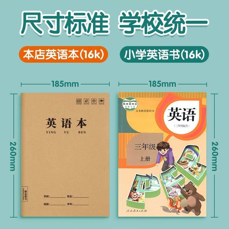 科目牛皮纸英语本16k小学生三年级初中生加厚统一标准大号英文横线笔记本手工线装