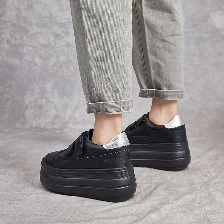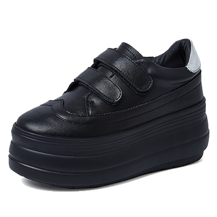黑色厚底松糕真皮懒人鞋女小个子增高8cm魔术贴休闲秋冬保暖板鞋