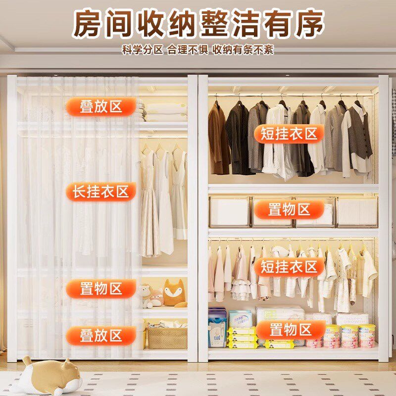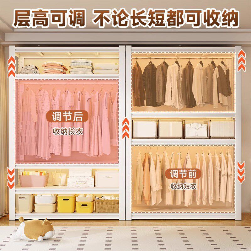 配件带挂衣杆洞洞板防尘帘家用货架衣架开放式衣柜钢制简易衣帽架