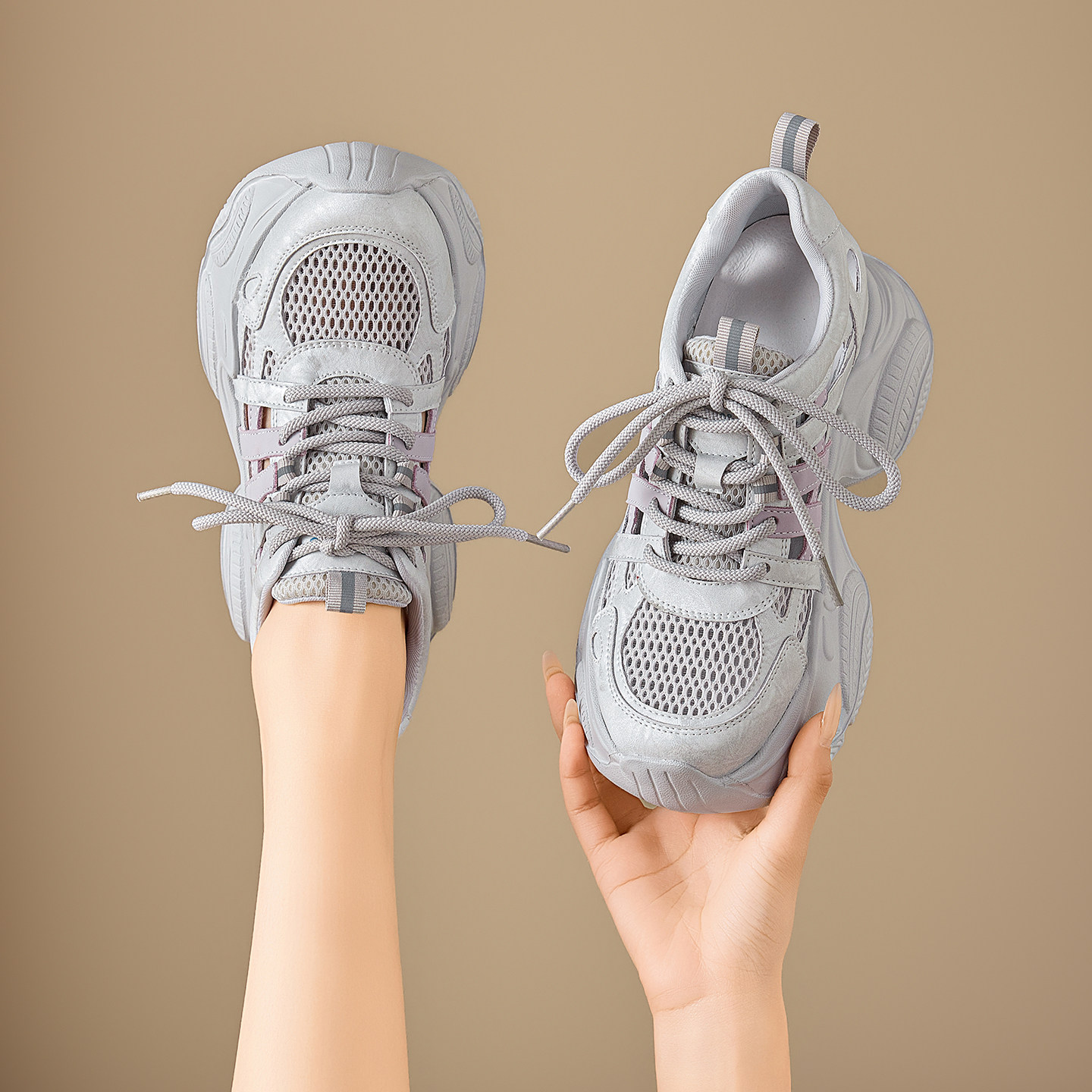 9CM内增高老爹鞋女2026夏季新款小个子厚底透气网面镂空运动女鞋